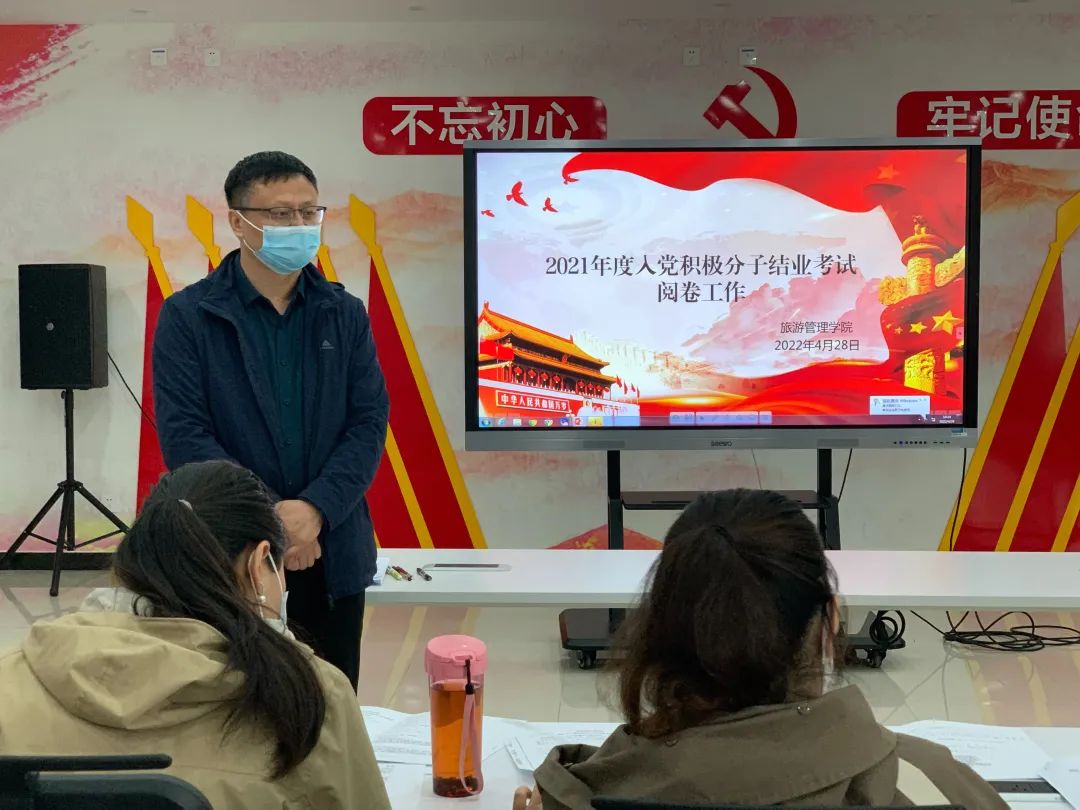 为检验入党积极分子们自开课以来党课培训的学习成果,深化党的基本理论、基本路线、基本纲领和基本经验教育,进一步提高入党积极分子的政治理论素养。旅游管理学院分别于4月27日和28日下午,组织开展了学生入党积极分子培训结业考试和阅卷工作。学院党总支副书记张楗让到场监考,学校党委组织部黄中老师莅临考试现场指导工作。