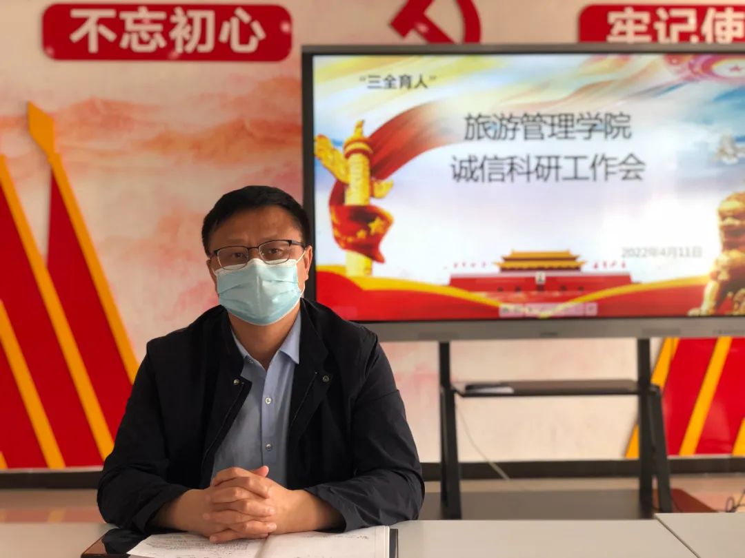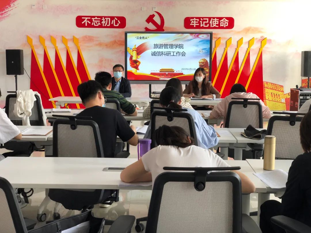 2022年4月11日,旅游管理学院诚信科研工作会4楼党建馆召开。党总支副书记张楗让、团总支代书记张颖以及全体专兼职辅导员参加会议。会议由张楗让主持。