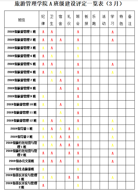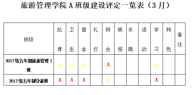 为进一步深化学院“三全育人”综合改革试点工作,贯彻学院“三全育人”工作要求,实现全方位育人。全面促进学生“三素养”教育不断提升,坚持立德树人,把培育和践行社会主义核心价值观落到实处;为培养学生的责任感、荣誉感、合作意识、奋斗意识和竞争意识,激发学生进取心,坚持以学生为本,把正能量融入学生教育、管理和服务的全过程。经研究,结合校院实际,参照A级景区评定规则,实施A级班级建设评定标准,由以往的上墙授牌转变为每月用微信公众号的方式推送,使学生学有榜样、赶有方向、比有对手、追有目标,为校院的可持续发展注入新动力!