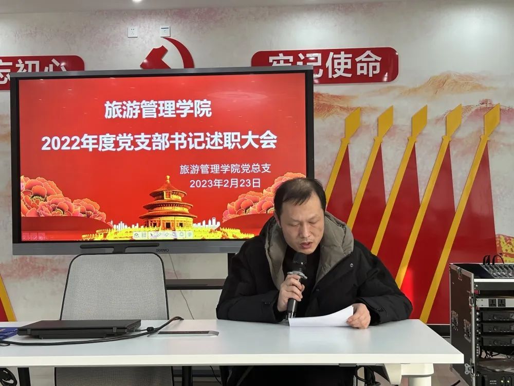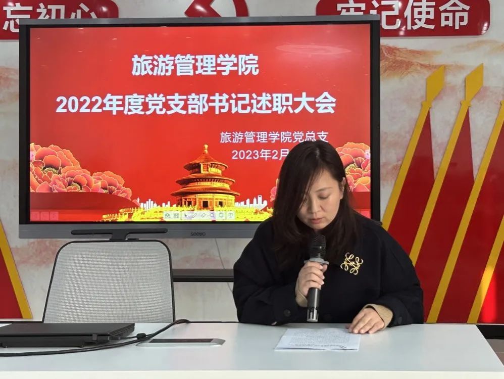 为进一步贯彻落实“党要管党、从严治党”要求,高效推进党建工作高质量发展,根据学校文件精神,旅游管理学院党总支于2022年2月23日下午,在学院党建馆召开2022年度党支部书记抓党建述职评议会,旅游管理全体党员同志及全体非党员教师参加会议,会议由旅游管理学院党总支书记秦合岗同志主持。