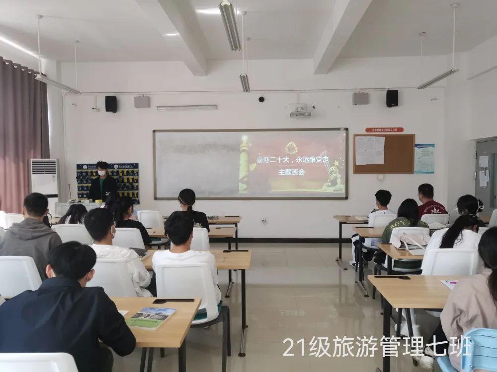 为让党的声音直达青年学子思想深处、心灵深处,2022年9月28日旅游管理学院“喜迎二十大、永远跟党走、筑梦向未来”主题班会在5号楼各班开展。班会由各班班主任主持召开。