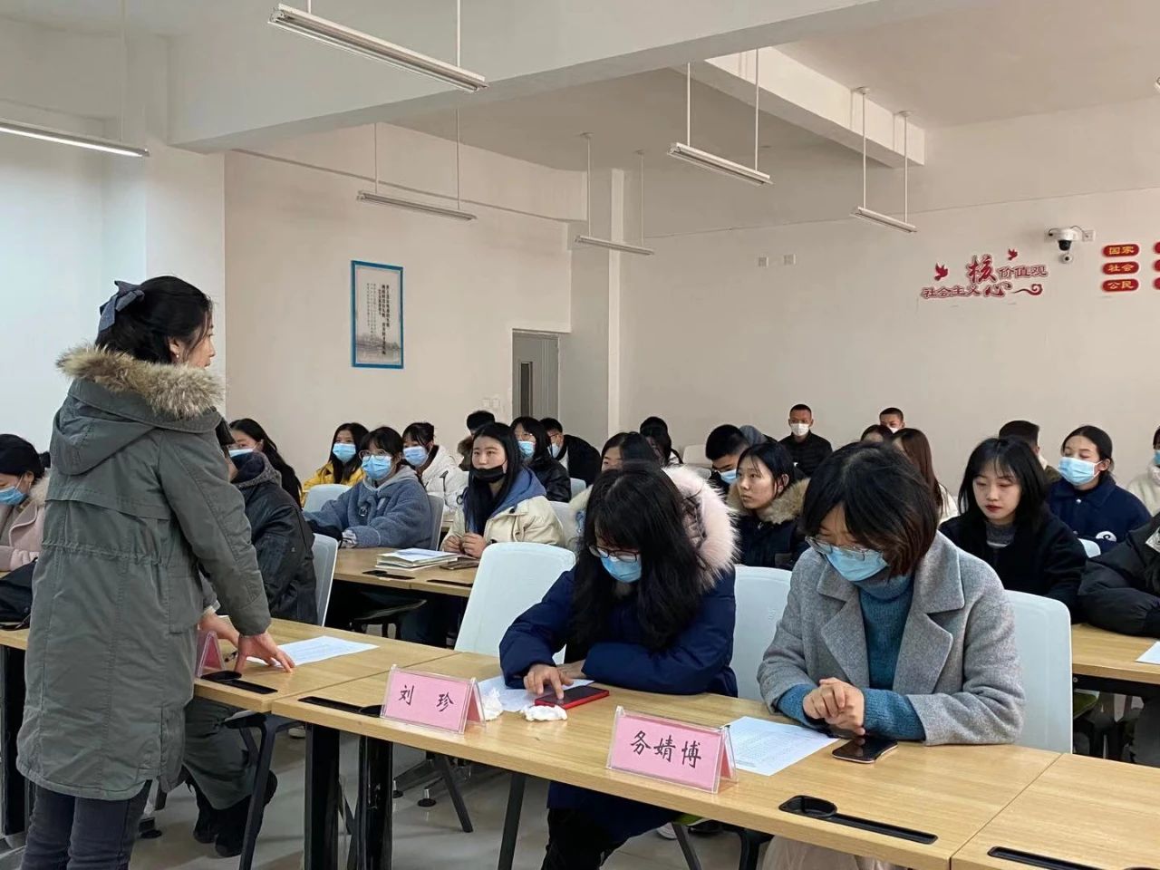 为广泛征集学生意见,民主选取学生代表参加我校第一次学生代表大会,2020年12月7日中午12:00,我院在4B207教室举行第一次学生代表大会学生代表推选会,与会人员有党总支副书记王磊、团总支书记刘晓丹,刘好好老师、刘珍老师、务婧博老师和刘平平老师。会议由我院学生会主席郎梦瑶主持。