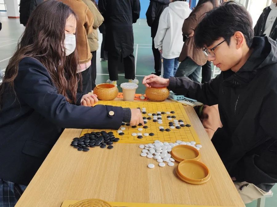 此次棋艺挑战赛涵盖了围棋、五子棋两种深受同学们喜爱的棋类项目。比赛现场气氛热烈非凡,选手们个个全神贯注,或眉头紧锁、沉思棋局,或落子如飞、自信满满。每一步棋都蕴含着他们的智慧和策略,棋盘之上风云变幻,恰似一场无声的战争。