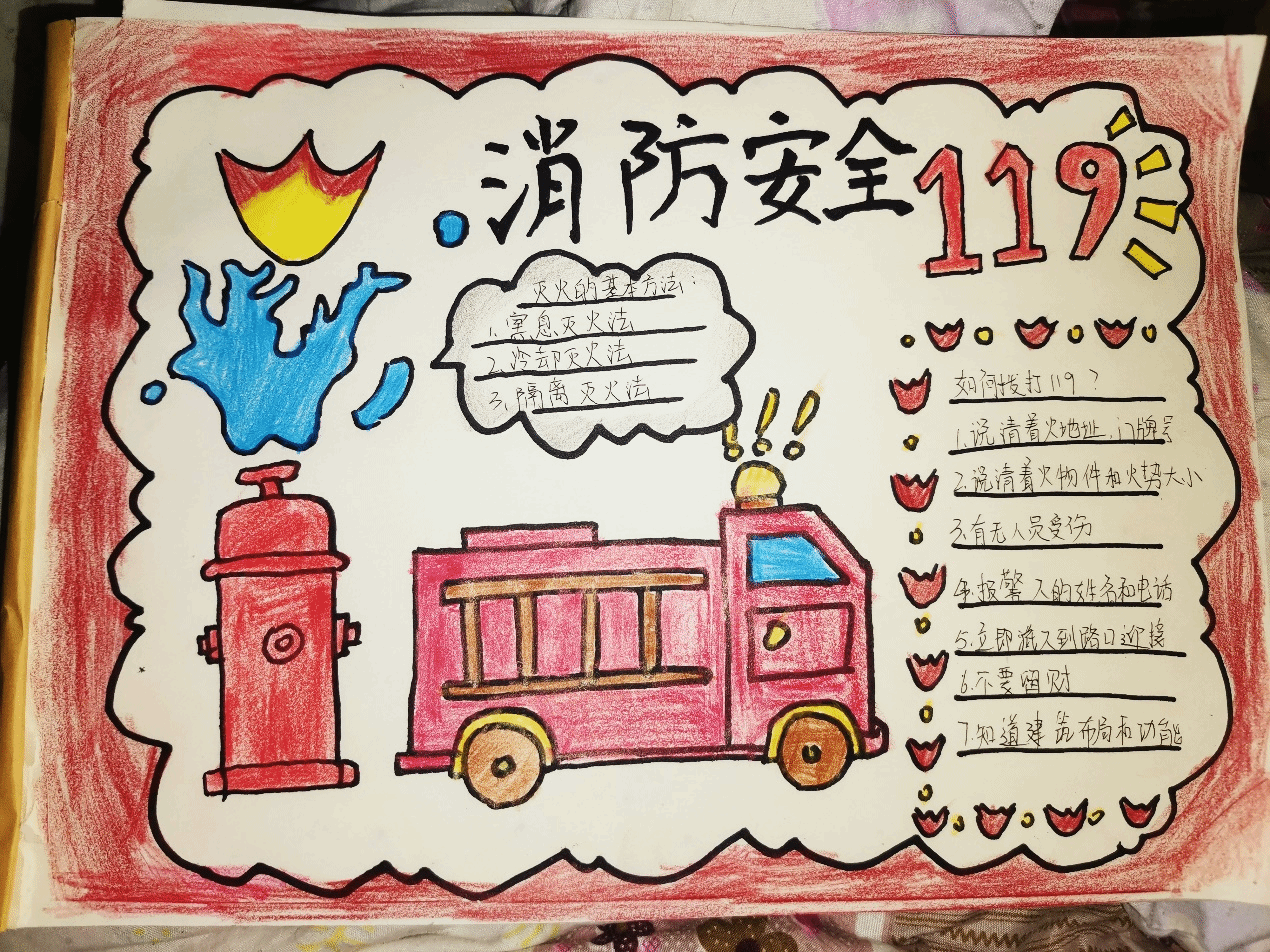 在此次活动中,同学们积极参与其中。本次活动通过手抄报宣传、主题班会、教学楼和宿舍消防安全隐患排查等方式进行。以征集征文和绘画手抄报的形式宣传消防安全知识;各班班会的召开,使学生进一步增强防火防灾意识,了解逃生技能,从而做到有效的预防。通过对教学楼和宿舍深入细致地开展安全隐患排查,发现隐患马上整改,不断加强各项安全防范措施,从而做到有效的预防。