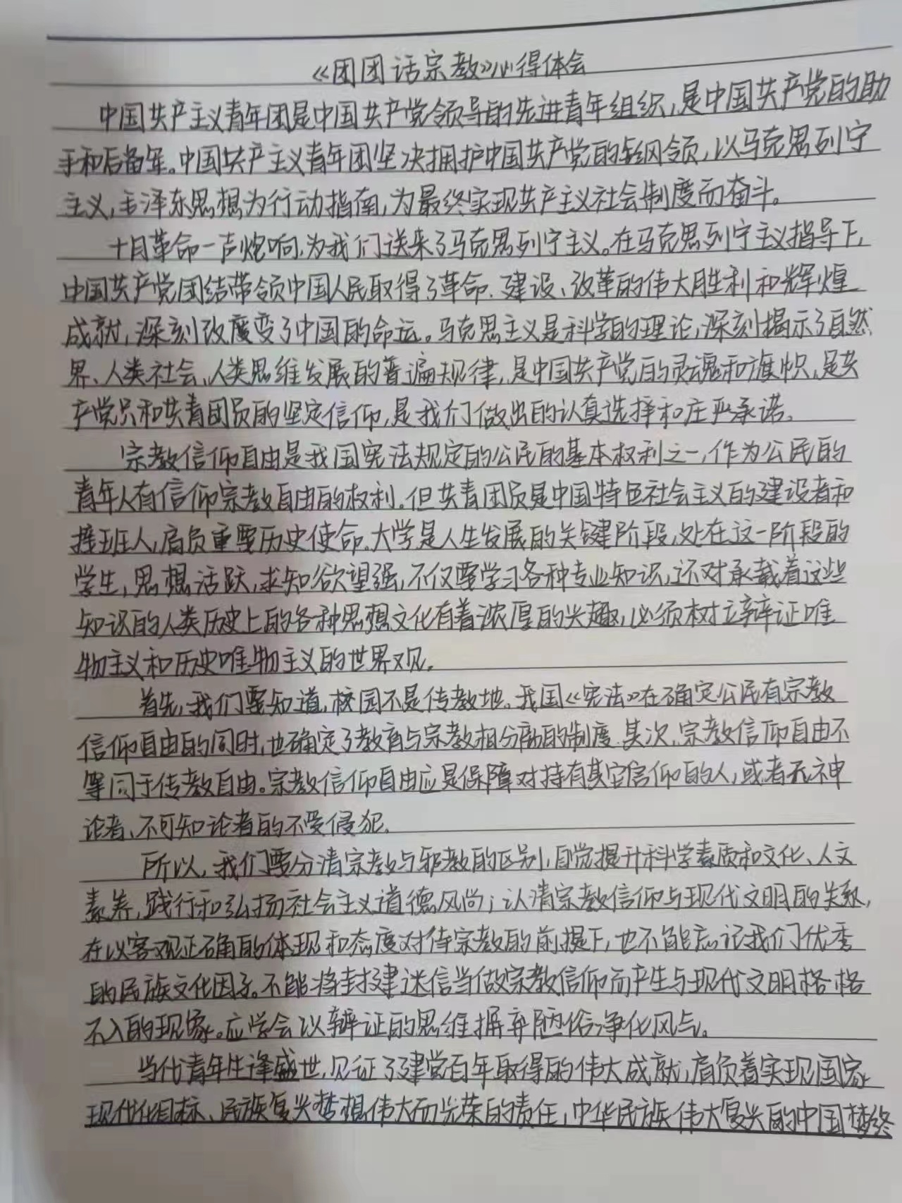 通过班会,同学们纷纷表示受益匪浅,在提升科学认知水平的同时,进一步了解和掌握了国家关于宗教工作,尤其是高校宗教工作的政策法规,提升了抵御宗教渗透的意识和能力,更加坚定了马克思主义信仰和中国特色社会主义理想信念。