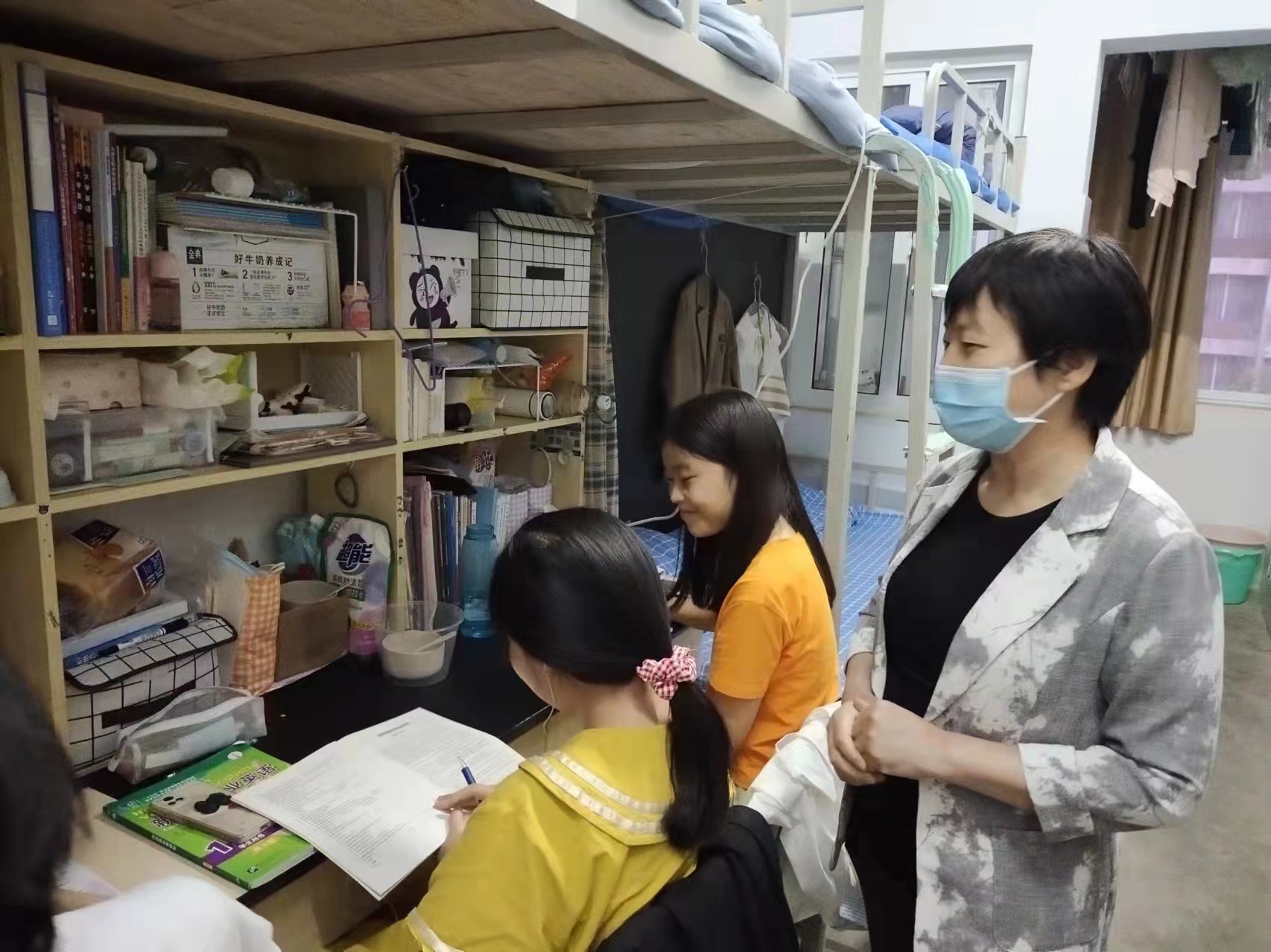 封校期间她在学生宿舍和学生同吃同住,每天清晨醒来第一件事就是翻看手机上各项信息,参加防疫工作的例会,去教室检查学生网课情况,当防疫管理措施升级后,每天走进宿舍,一间一间的推门查看学生上网课的情况,偶尔遇到睡懒觉不认真上课的学生,她还要跟学生谈心谈话,直到学生改正错误为止。