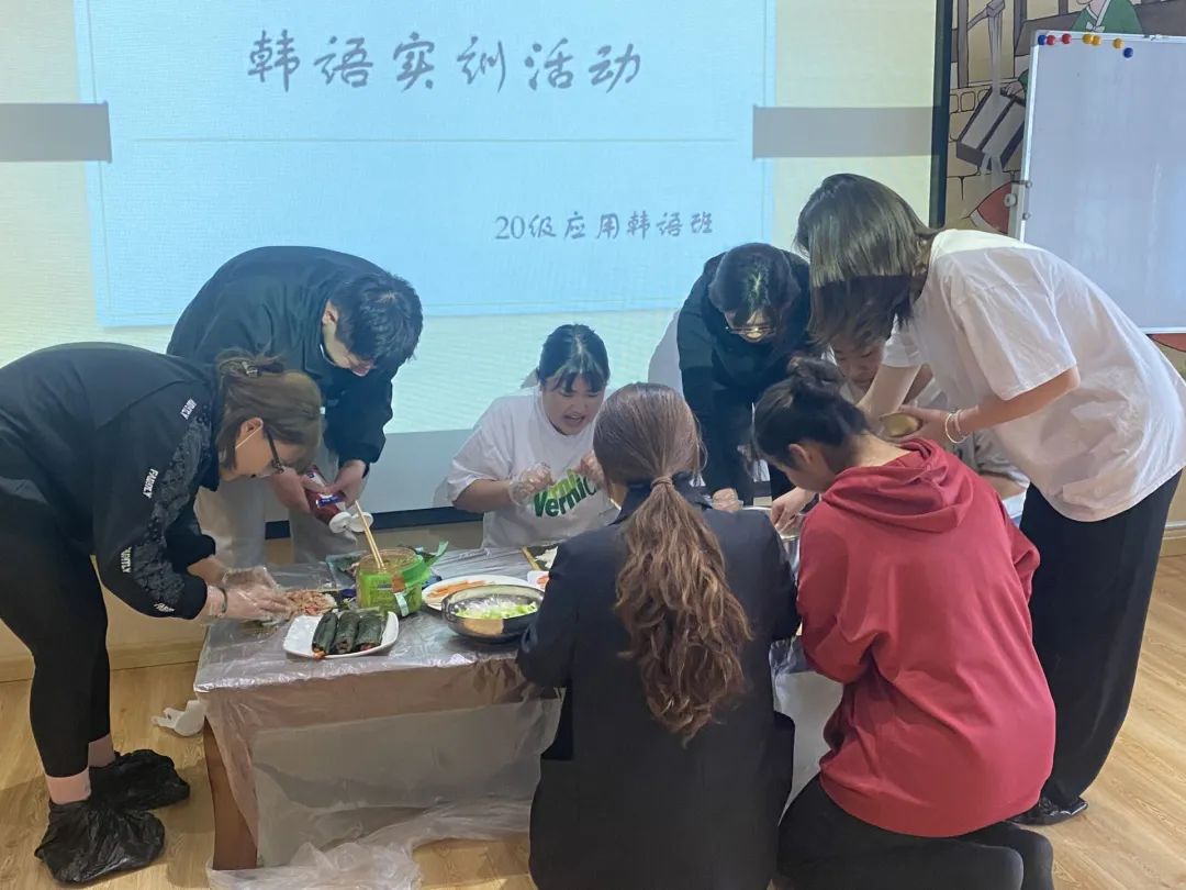 2022年4月6日,20韩语班全体人员在4B104韩语实训室开展了“韩语班实践活动”。活动在轻松愉快的氛围中拉开序幕,首先实训室负责人提前把实训要用到的食材准备好,布置好场地。同学们在经过老师讲解韩国烤肉和包饭以及拉面的制作方法后,有条不紊地开始亲身实践,体验韩国饮食文化的乐趣。学习了韩国烤肉的做法。学生们通过这次实践活动收获知识与乐趣的。