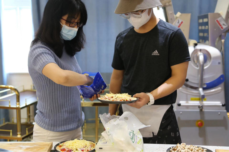 【烘焙实训】活动在4B103英美文化实训室举行。在刘珍老师的细心指导下,同学进行了分组烘焙竞赛活动,每组成员任务分配分工明确,分别制作了披萨和蛋挞。同学们纷纷表示课余活动丰富多彩,培养团队协作的同时,也拉近了师生感情。