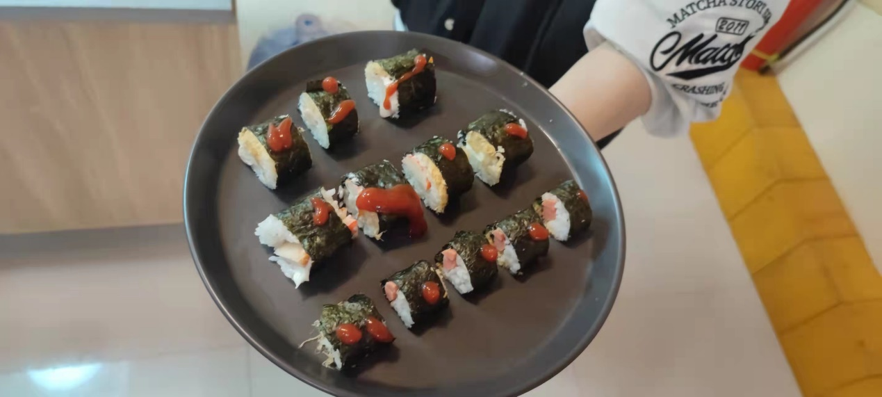 在本次活动中同学们一同制作寿司,分工有序,互相帮忙,团结友爱,积极参与,促使本次文化体验活动完美进行。