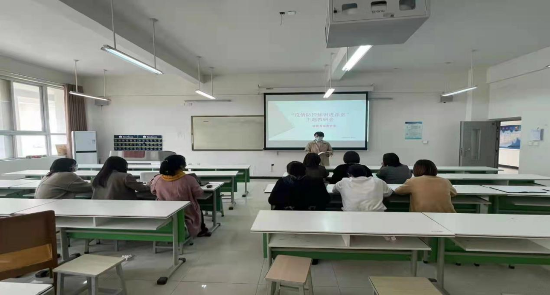 教研会首先开展了疫情防控知识进课堂的学习和讨论。通过本次学习,老师们对于疫情防控有了进一步的认识。病毒虽小,危害甚剧。目前省内疫情防控形式持续向好,但每日仍有新教增,显然病毒传播风险依然存在,故仍不可掉以轻心。解慧琴让大家就如何将疫情防控知识融入课堂教学,如何将安全教育、科学防疫作为课程思政内容编入教学方案展开讨论。老师们反映在课堂上会使用微信小程序、学习强国APP等途径给学生灌输病毒的防疫知识。从认识病毒、病毒感染原理、病毒传播途径和防疫方法等方面为学生进行详细的讲解,还就学生提出的在校期间如何做好自身防护、发现可疑病例如何处理、如何正确疏解因疫情引起的心理压力等问题做了解答。