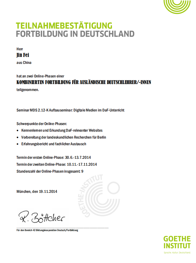 可考证书:TestDaF(德福)考试、歌德学院A1-B1考试、全国大学德语四六考试、德语导游证、普通话证书、茶艺证书、跨境电商证书等。