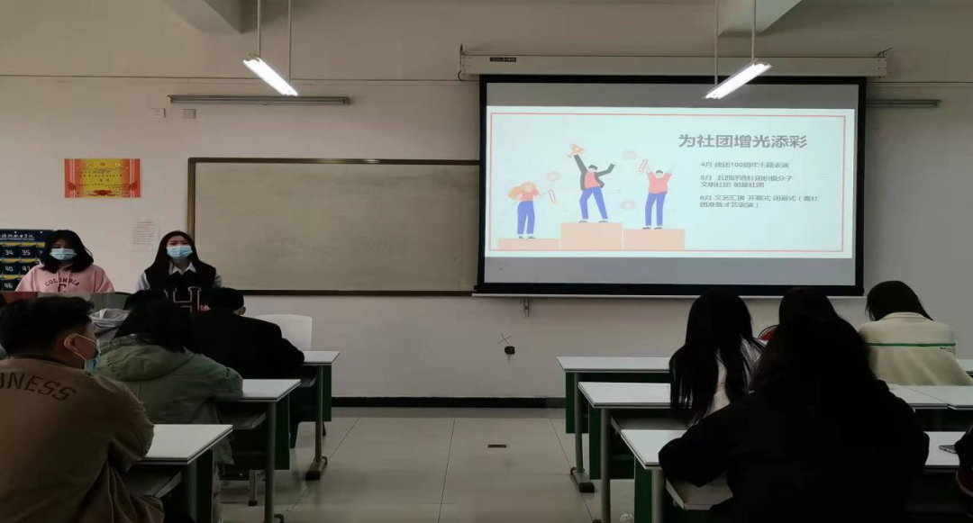 首先,由社长马梦雅介绍韩语社团,并宣布本学期新课程开始。社长主要讲述本学期的一些活动安排,以及要选出几名的先进学生。为了更好安排这学期的活动,韩语社社长在社团内选出宣传委员。