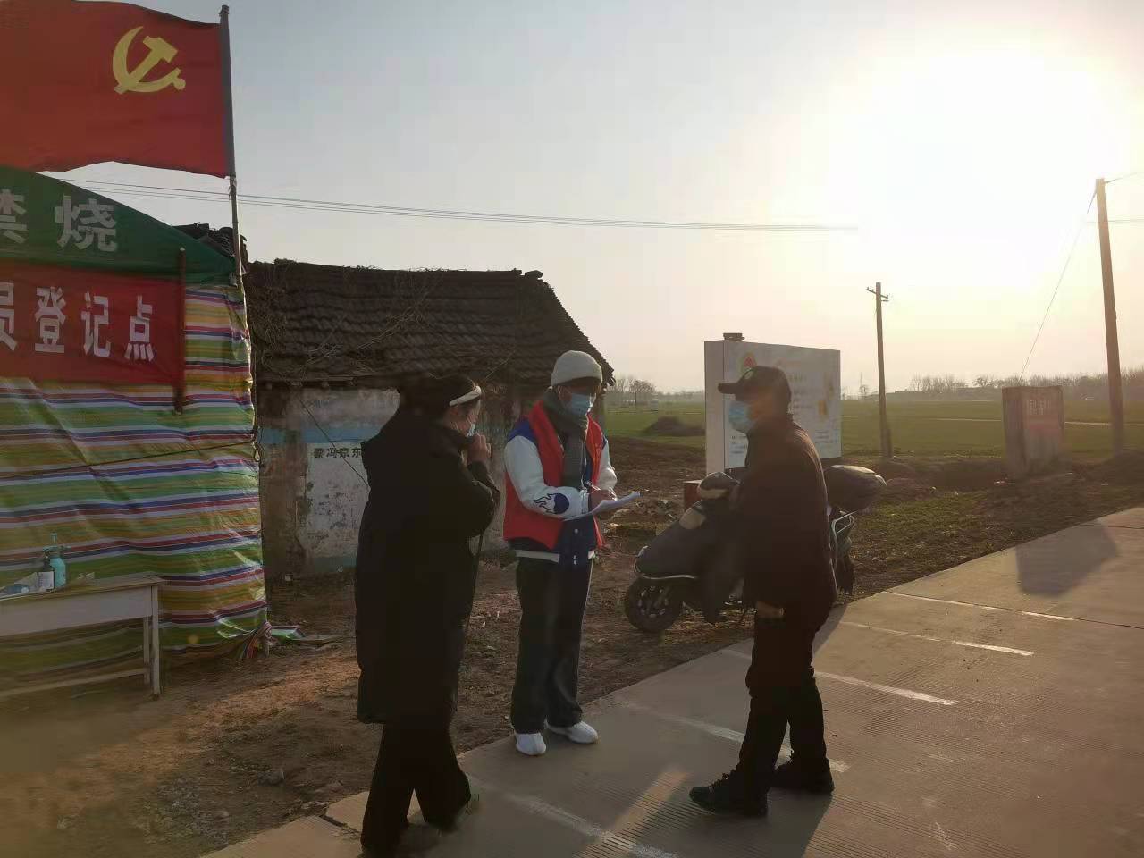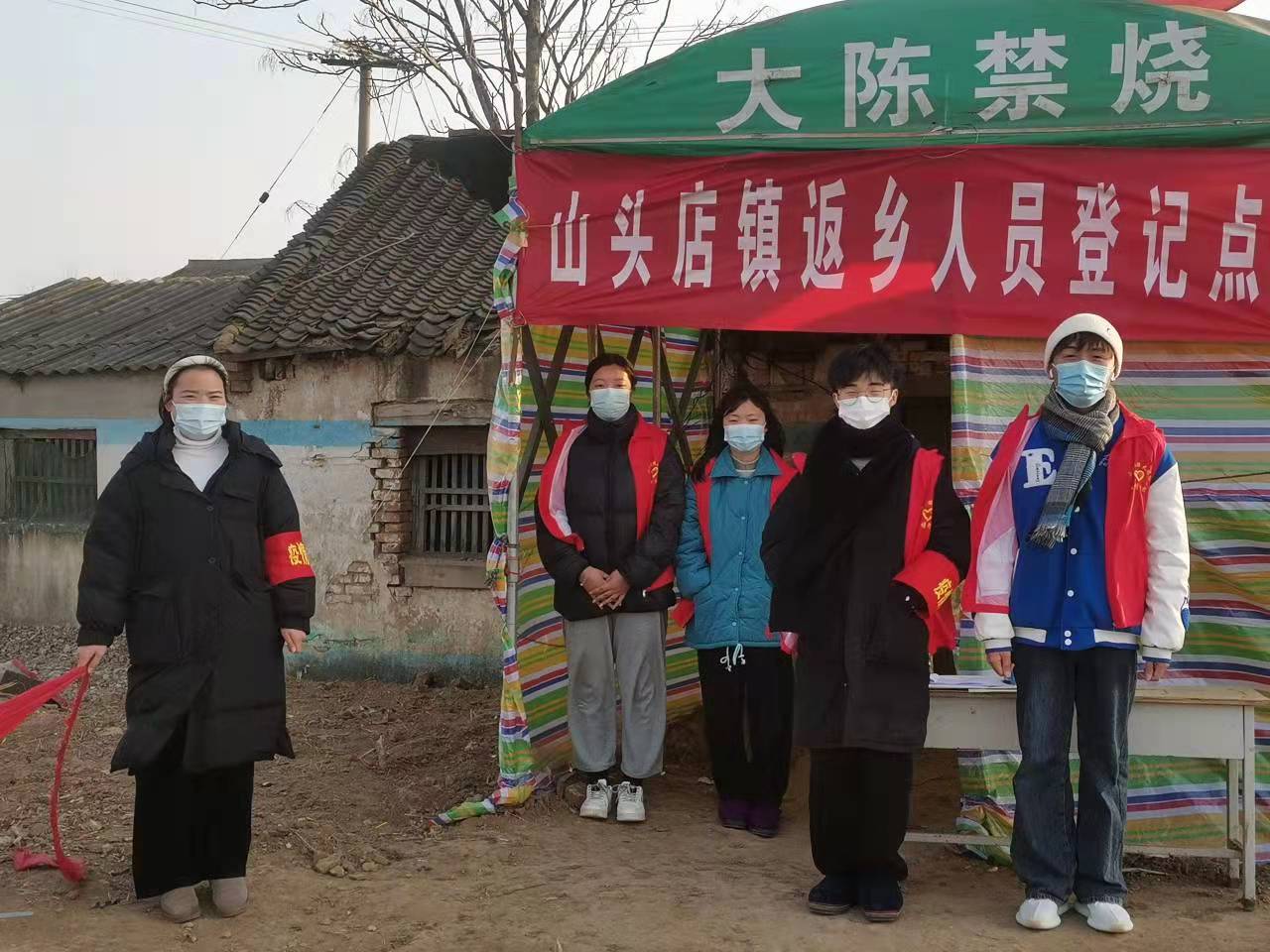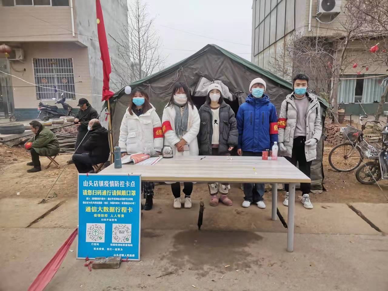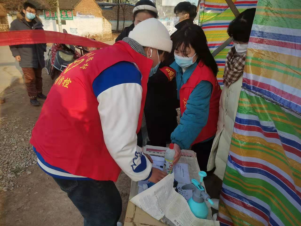 我院20级商务英语2班豆康昊在1月5日—1月20日期间,每日前往河南省许昌市襄城县山头店乡大陈村进行值班,豆康昊同学每日在寒冷的天气中认真辛勤的协助工作人员进行核酸检测、深入各户开展排查工作、对来往人员进行登记,测量体温等工作。在琐碎的事情上,豆康昊同学也仍然积极主动的每一项疫情防控开展工作。他说:“作为一名青年大学生,当国家需要时,我将奉献自我,不负韶华,勇于战斗于前线!我坚信在大家共同的努力下,疫情会很快过去,这个冬天一定会格外温暖!