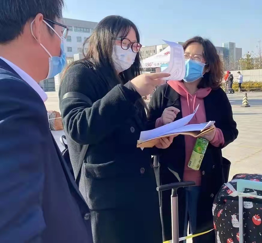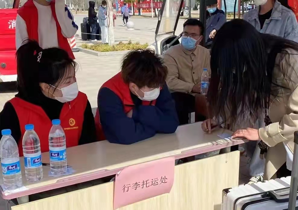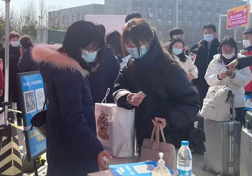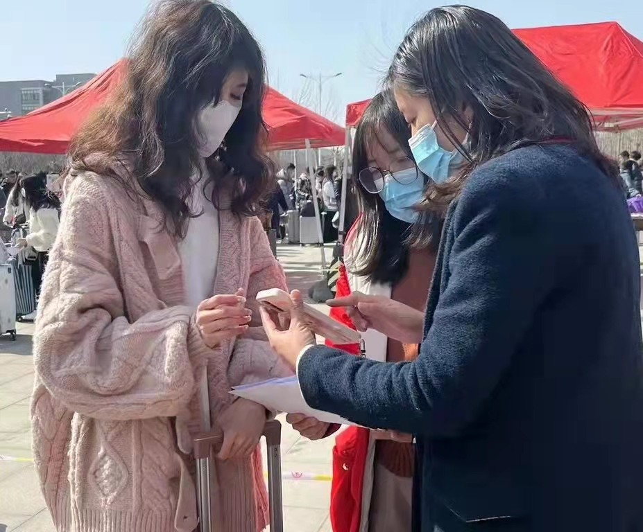各位老师认真核查行程码、健康码,健康五项档案,对行李消毒,测温,学生干部,志愿者同学热情服务,耐心引导。
