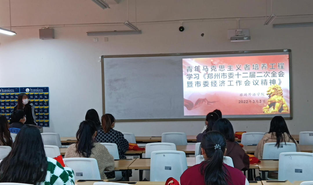根据《共青团郑州市委学习宣传贯彻市委十二届二次全会暨市委经济工作精神实施方案》要求,旅游外语学院青马班学员于3月2日在4B教学楼207教室参加了《市委十二届二次全会暨市委经济工作精神》专题宣讲会。本次活动由旅游外语学院团总支组织部长邝鑫雨主持。