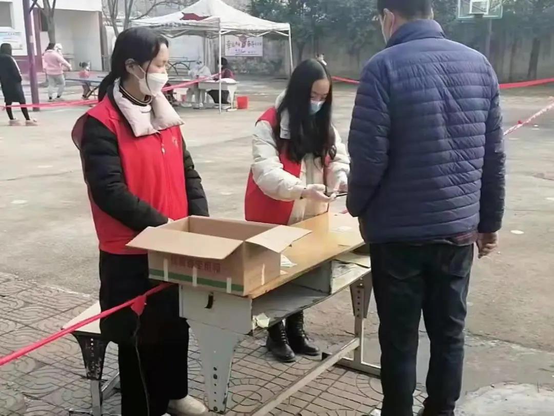 在河南省禹州市鸠山镇唐庄小学,我院21级商务英语3班冯梦真从1月2号开始,每日上午九点至下午五点一直坚持在抗疫志愿者的岗位上。冯梦真同学负责帮助村庄做好防控工作,收集核酸检测信息。瑟瑟寒风中,她认真核对每一位核酸检测人员的信息,为后续的防疫工作做好充足准备。