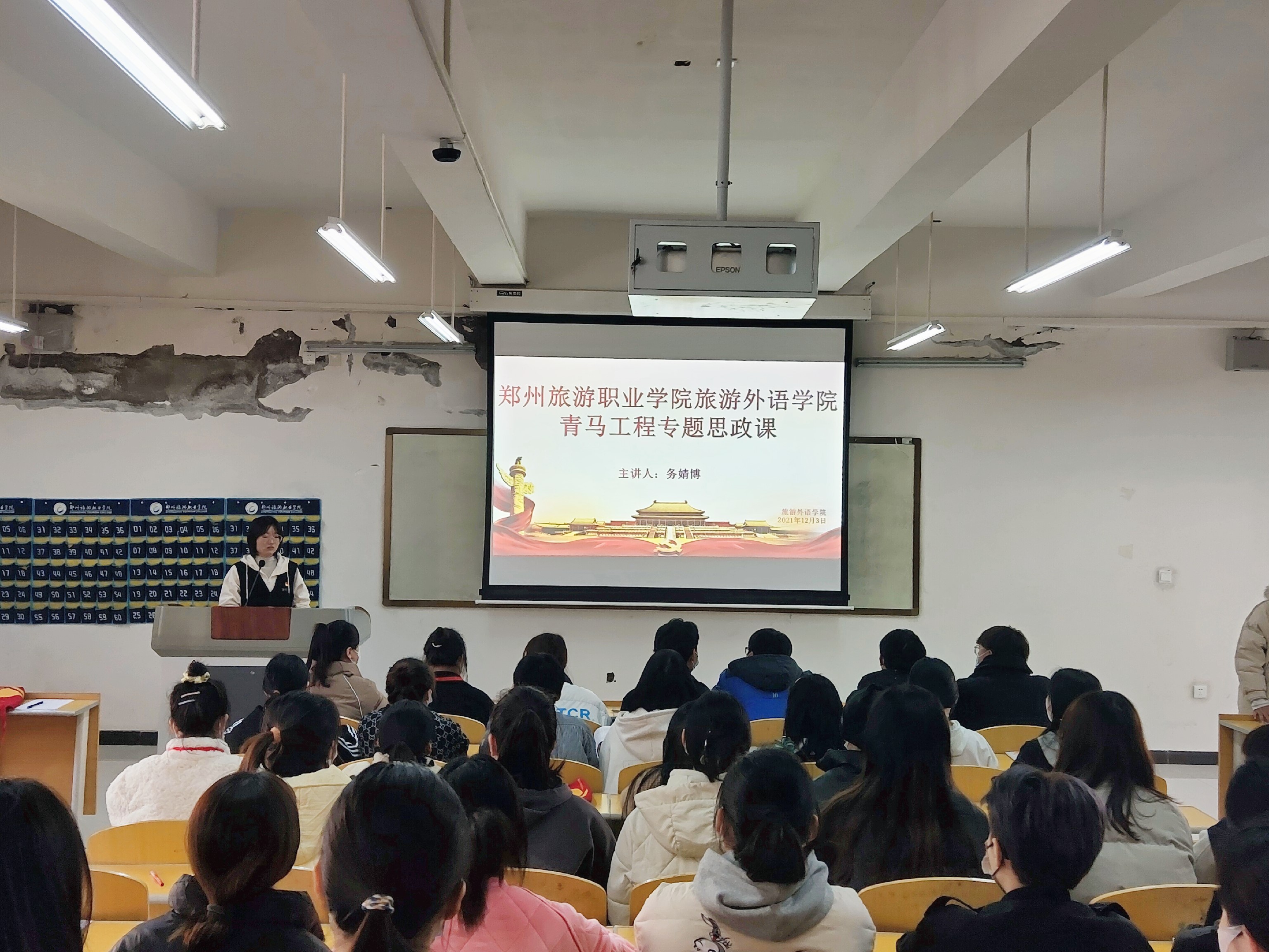 为进一步提高旅游外语学院青马学员对意识形态工作重要性的认识,增强辨析能力和网络舆情处置能力,切实推进意识形态工作落地见效,2021年12月3日旅游外语学院全体青马学员在4B教学楼211教室开展了青马工程培训班的培训课程。