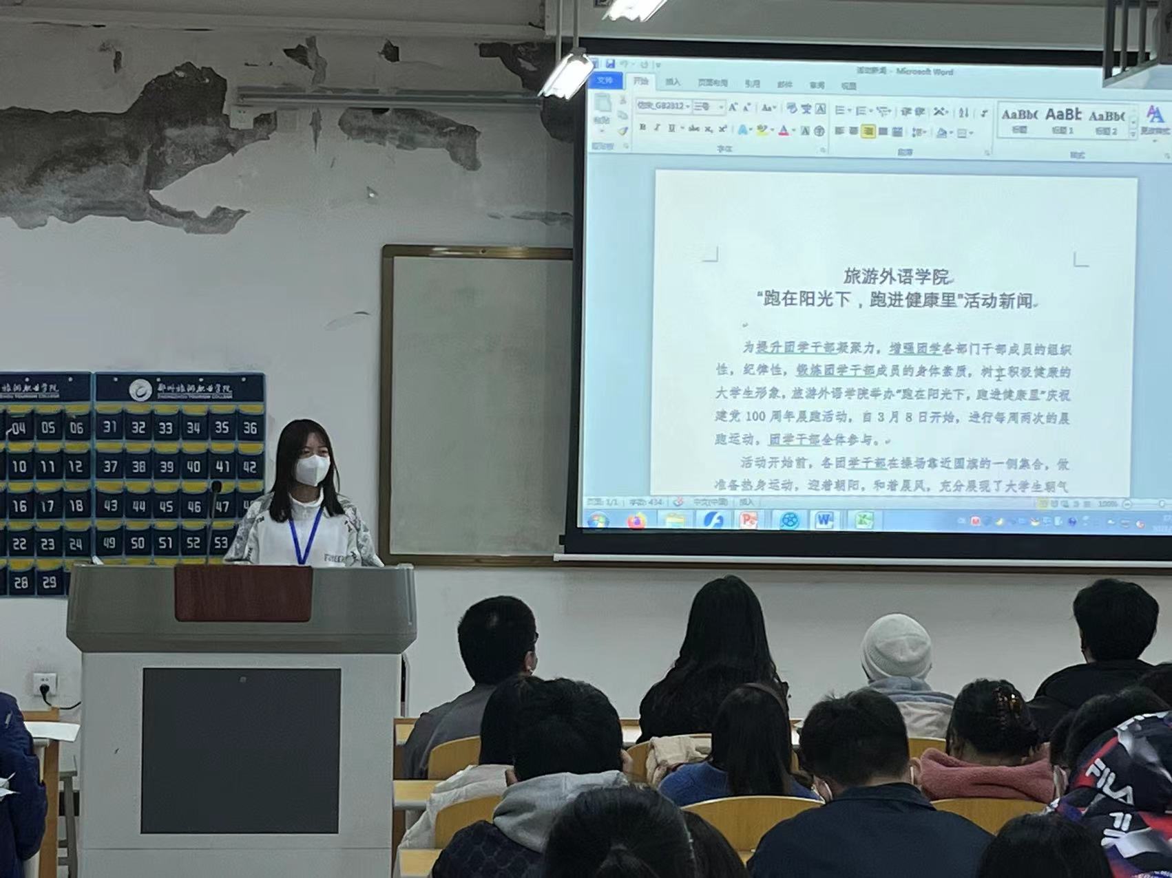 11月29日下午,旅游外语学院在4B教学楼211教室召开21级班长培训会。会议由学生会主席赵义雯主持。