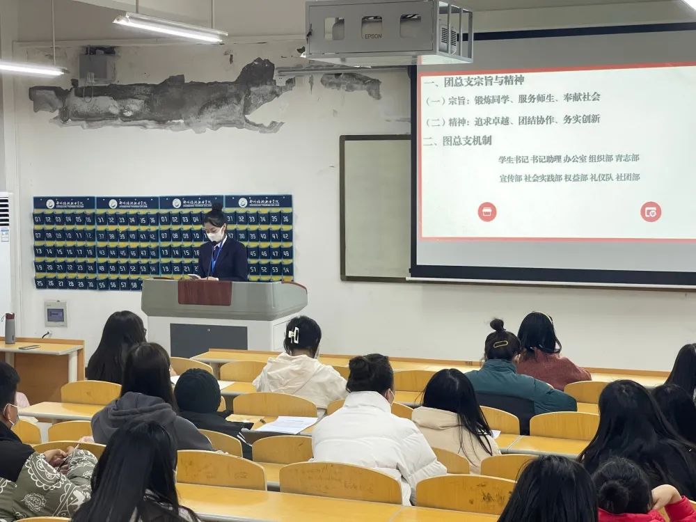 会议伊始,赵雯雯指出团总支的宗旨在于“锻炼同学、服务师生、奉献社会”,团总支的精神在于“卓越追求、团结协作、务实创新”。接着,向大家展示了团总支的工作机制,增加21级工作人员对团总支的了解。随后,讲解并演示了文档格式的具体要求、excel表格的基本操作、PPT的制作等。紧接着,由宣传部部长秦磊磊向大家讲解了新闻撰写的基本要求及格式。会议最后,赵雯雯带领大家共同观看了我院特色活动的精彩瞬间,使大家更快的融入到团总支这个大家庭中。
