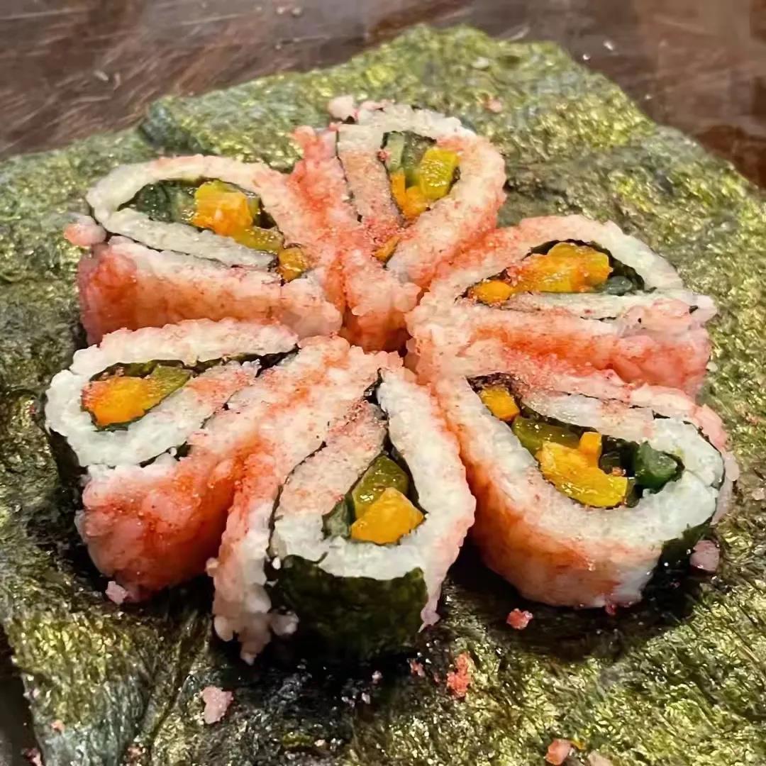 活动当天,实训室负责人提前把实训要用到的食材准备好,布置好场地。中午11点40分,同学们准时在实训室集合,有序地按照老师和负责人的要求,分组开始领取食材,制作属于自己的寿司。