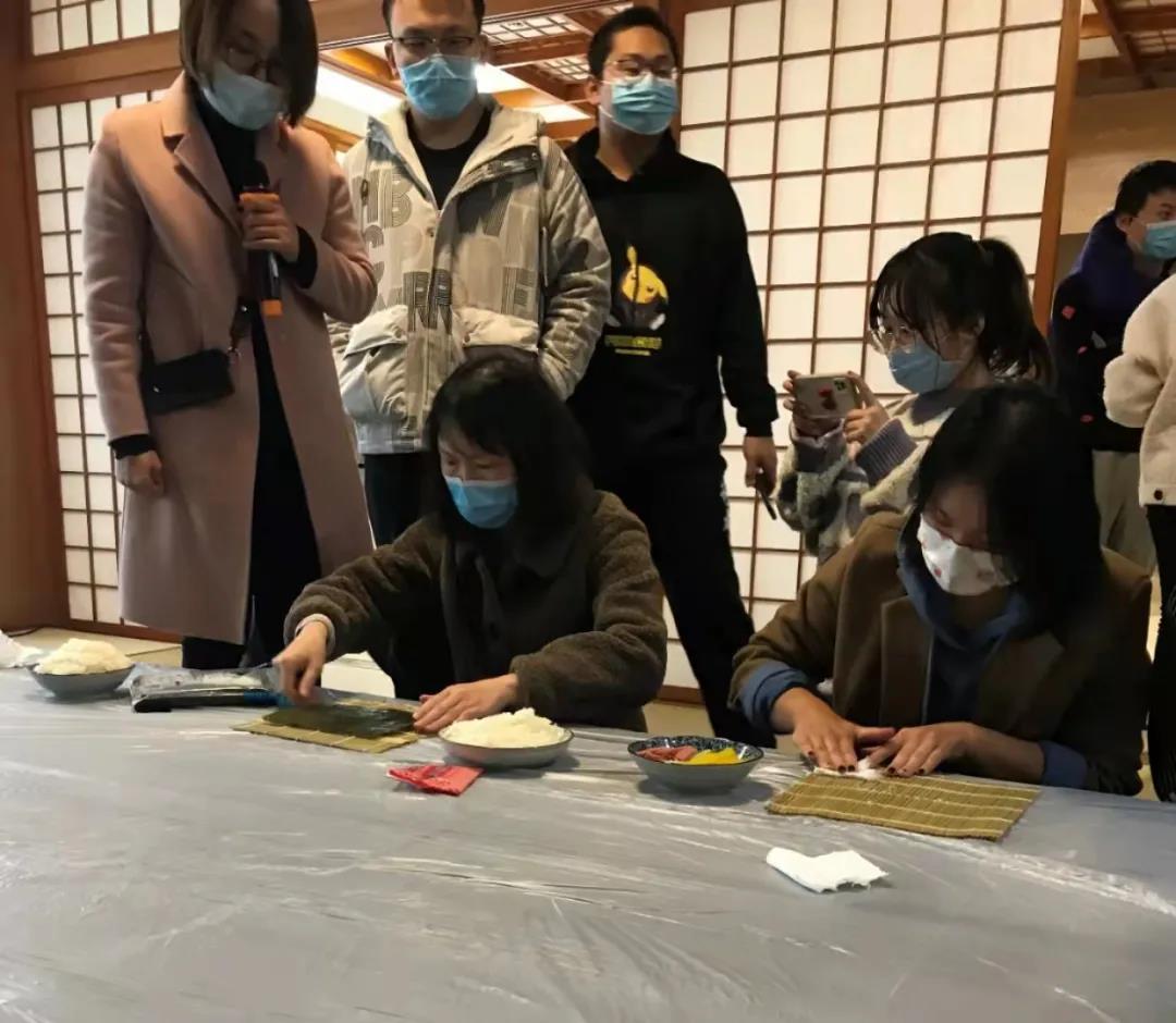 2021年11月13日中午,在李霞老师、卢仙阁老师的指导下,20级旅游日语1班在4B104实训室开展了“体验日本美食文化”的实践活动。