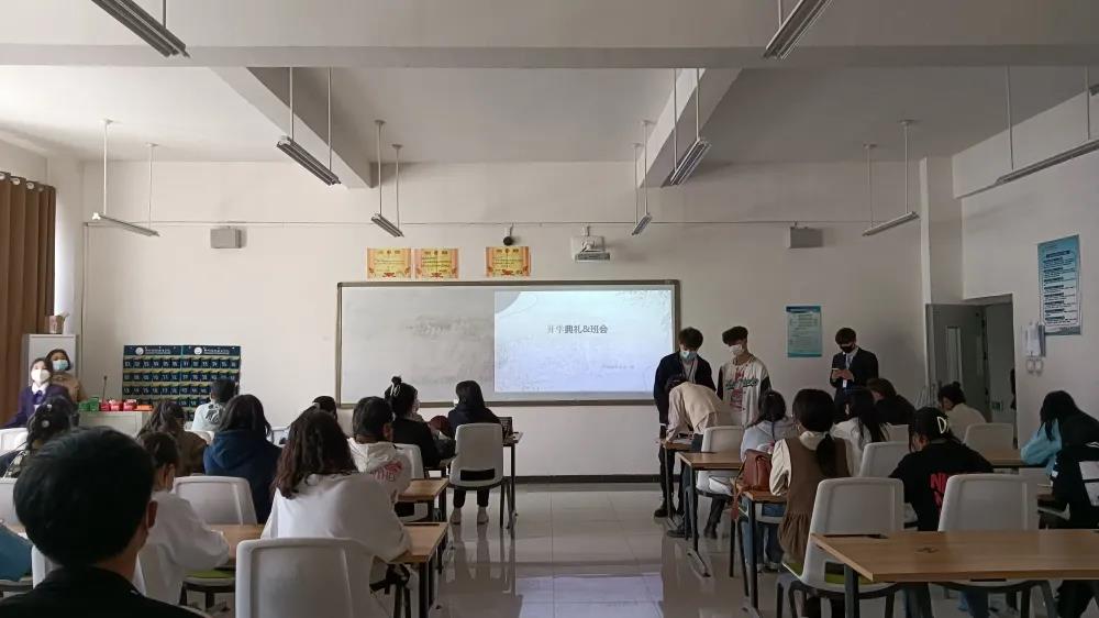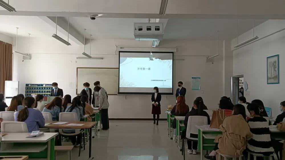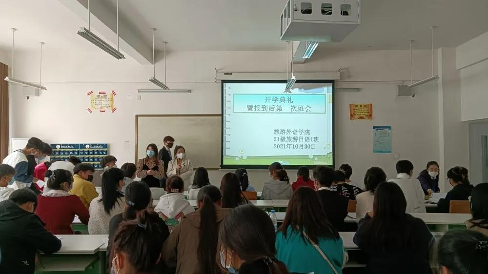 扬星辰大海梦,恰同学少年时。十月的尾巴,旅游外语学院迎来了一群朝气蓬勃的大一新生。为做好2021级新生入学教育,加强新生生思想政治教育、安全教育和疫情防控常态化下的日常管理,厚植爱国主义情怀,强化价值引领,促进新生健康成长成才,引导新生从灾难中汲取奋进力量,增强班级凝聚力与向心力,10月30日下午两点,旅游外语学院于4B教学楼组织2021级新生开展“开学第一课”。参加此次班会的有我院院长张贺玲、党总支书记白娜、团总支书记刘晓丹、2021级各班辅导员、班主任、班级助理以及旅游外语学院2021级全体新生。