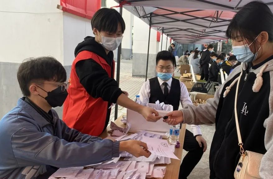 即使如此,报到处的各个环节仍然有条不紊地进行着。每一个环节都会有学长学姐陪同,每一个步骤都会有学长学姐指引。