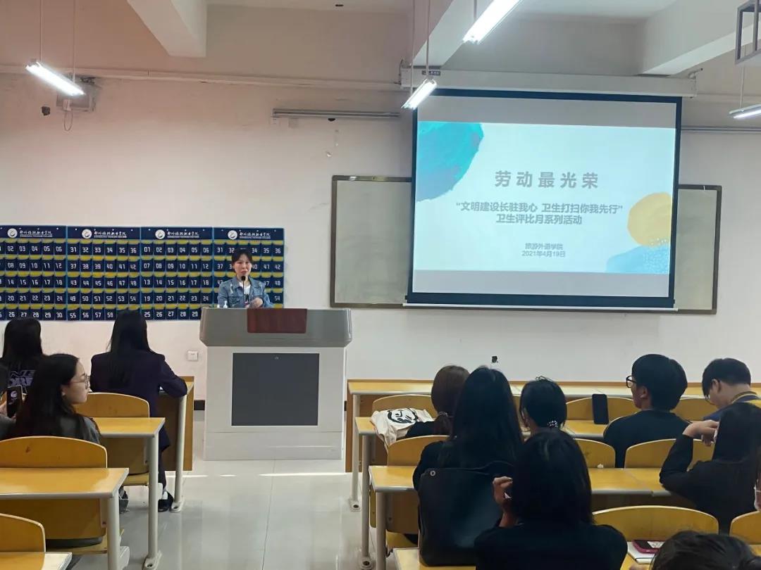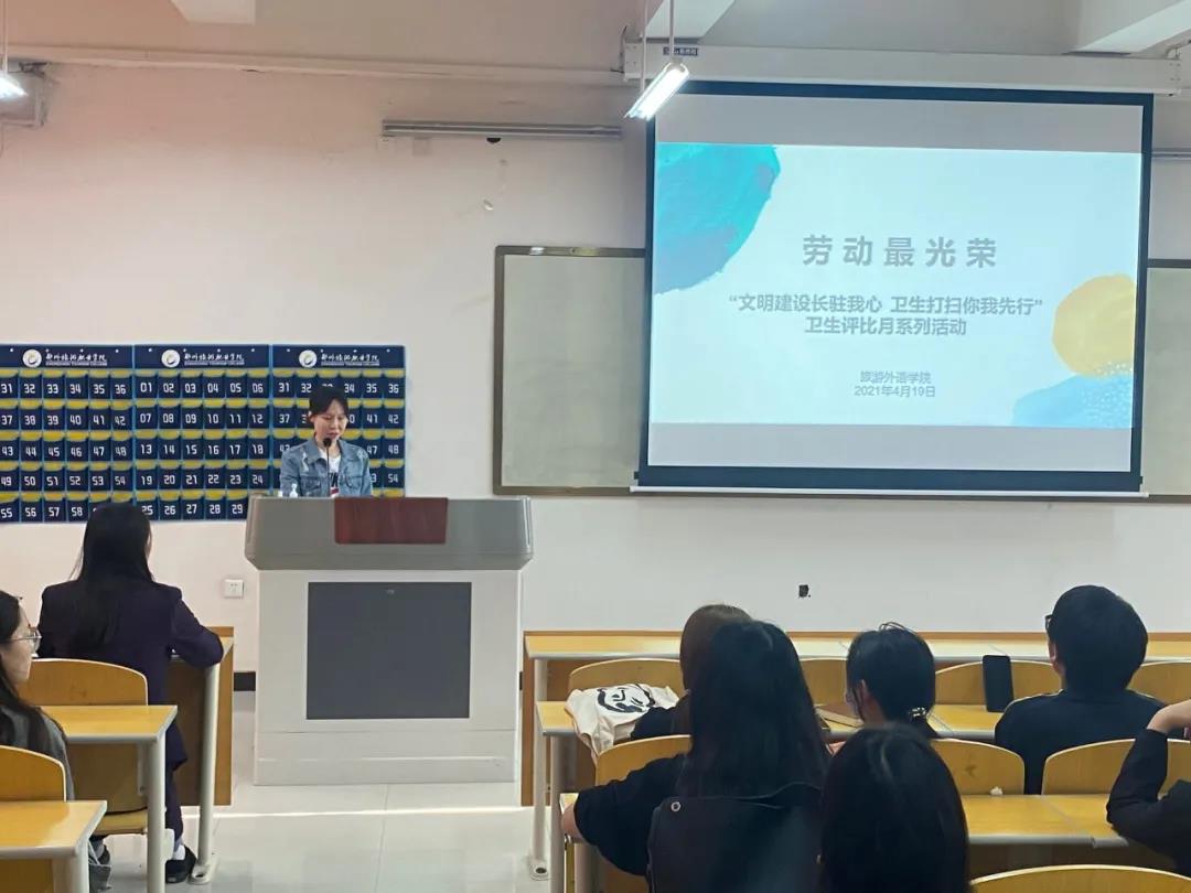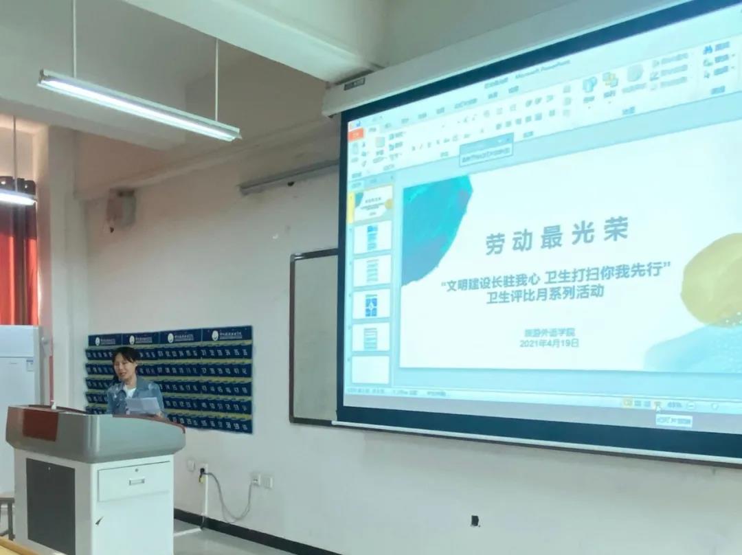 4月19日下午4时,我院“文明建设长驻我心 卫生打扫你我先行”卫生评比月启动仪式在4B211教室进行。会上刘好好老师向学生代表解读了《关于全面加强新时代大中小学生劳动教育的意见》,并再次向学生们强调本月在我院已开展的劳动课的重要意义,号召大家无论在何种岗位上,都要以认真负责的态度去做好劳动实践。紧接着,老师详细阐述了本次评比活动的时间安排及评选方案。同学们积极响应,纷纷表示会认真对待本次生产劳动课,努力锻炼并提升自己,为本次卫生活动的顺利开展尽一份力。