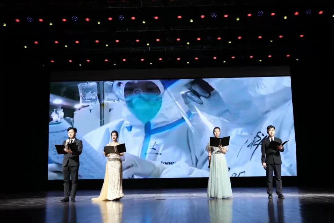 我院带来的第二个节目是《初心传承》。本节目以2020年的疫情为背景,致敬医护人员、致敬志愿者、致敬所有为疫情付出努力的逆行者们,诵读者用激昂的朗诵声传递着对雷锋精神的敬意。节目最后,一曲歌伴舞《初心传承》将现场气氛推向高潮!