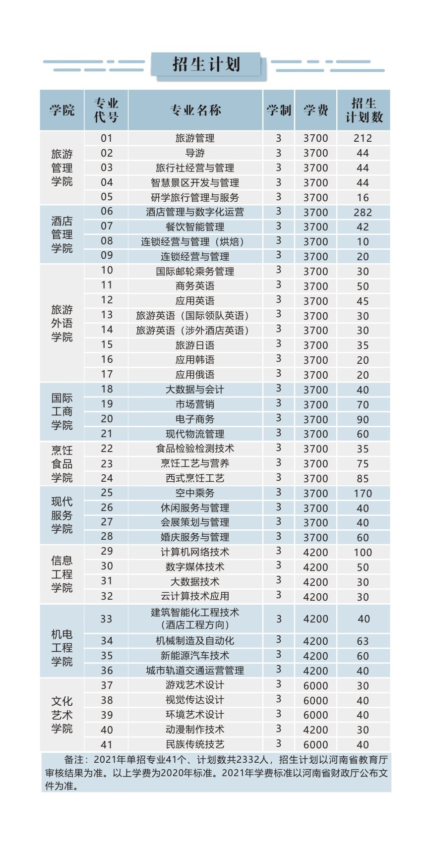 郑州旅游职业学院2021年单独招生章程