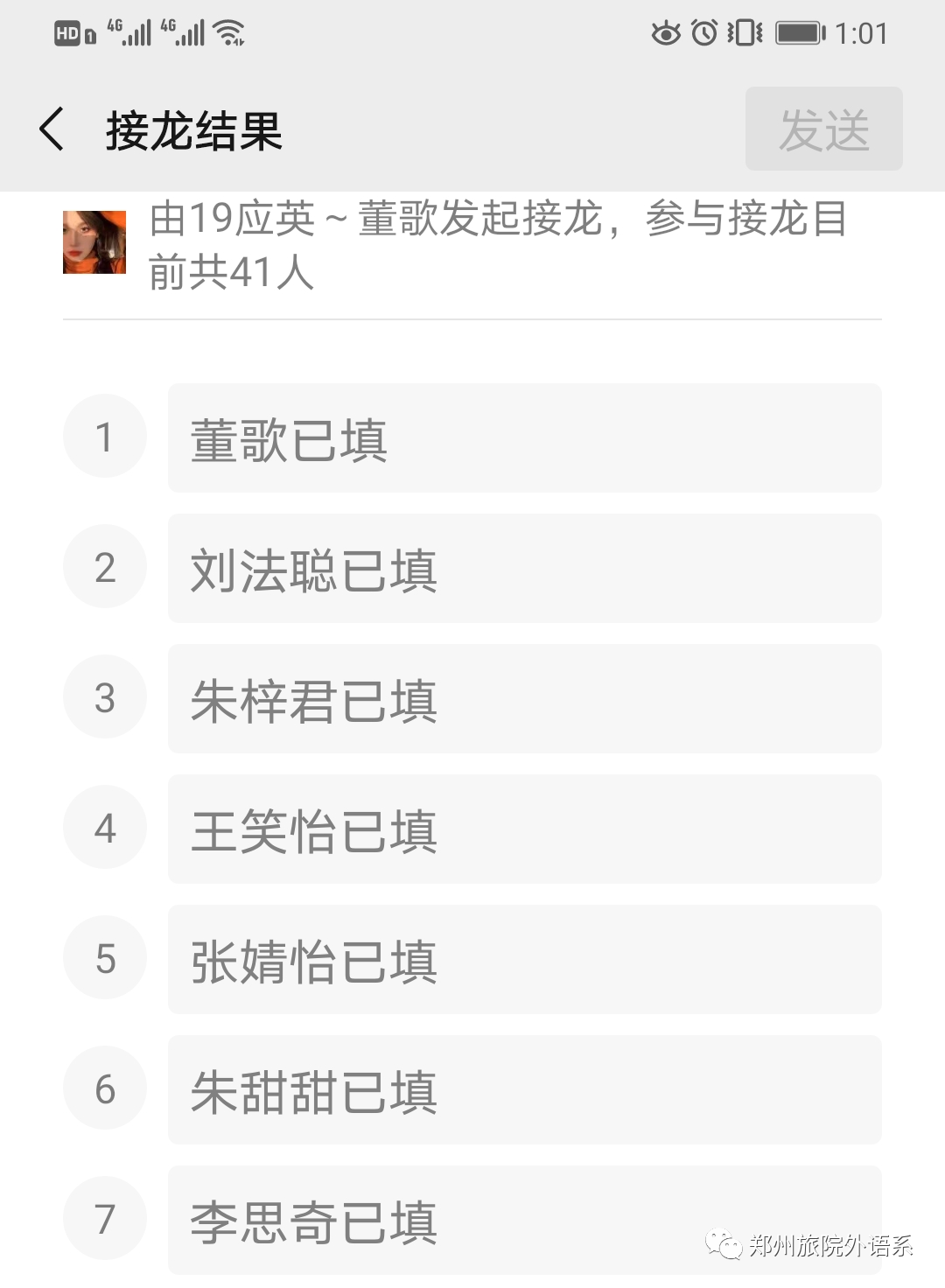 线上课程开展以后,每天除了正常的教学工作,作为班主任的我还要确认每位学生的个人健康情况填报。填报之初,由于系统尚不完善、访问量过大等原因,导致很多学生填报不上,除了指导学生如何正确填报,还要第一时间做好解释工作,让学生们了解个人健康状况每日填报的重要性和必要性,避免学生由于多次填报不成功而产生负面情绪。疫情期间,在线办公的常态化也催生了微信里很多好用的小程序。我们班用微信的接龙小程序让每位填报完的同学在群里接龙,这样可以节省统计的时间,取得了不错的效果。还有用WPS的多人协作模式填写表格,疫情期间所有表格的填写都是在线完成,相信很多同学已经熟练掌握了Office办公软件的操作。