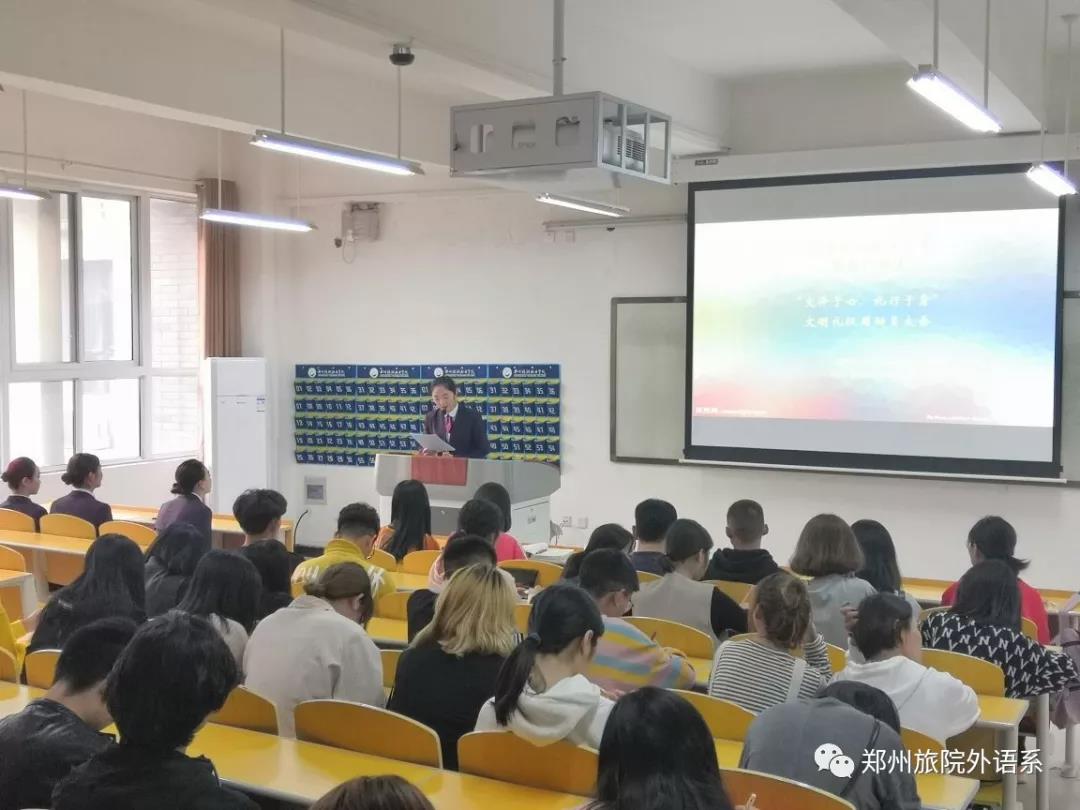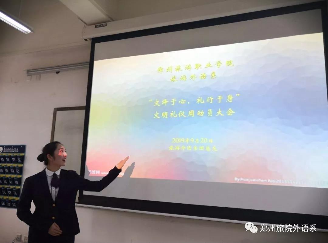 2019年9月23日4B教学楼,我系开展了“文泽于心,礼行于身”的文明礼仪宣传活动启动仪式,参加活动的人员是19级全部班级学生代表