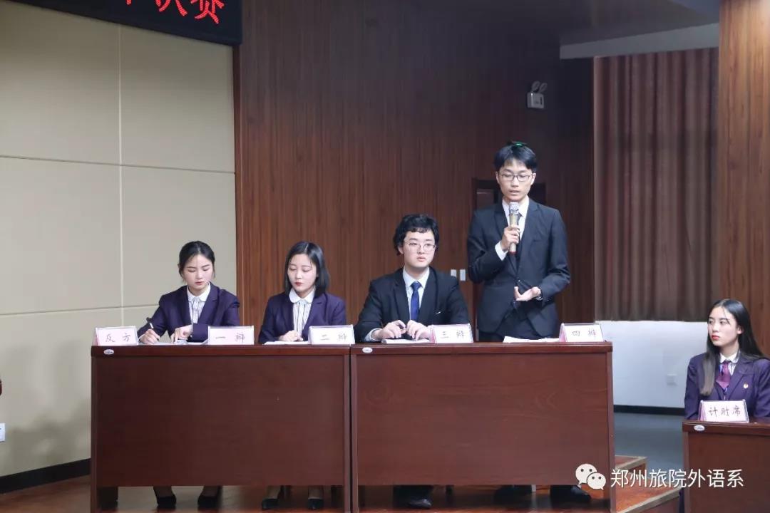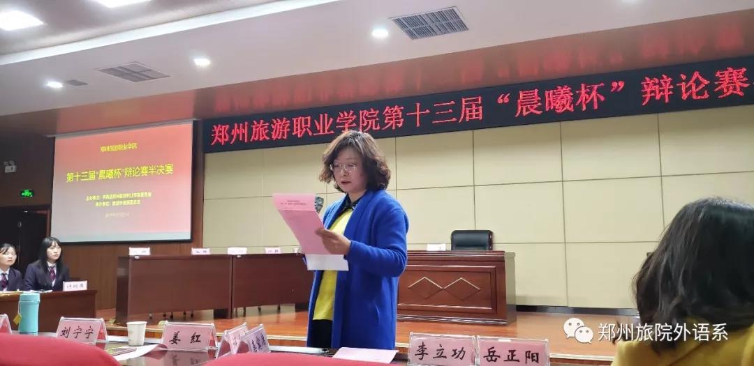 由学院团委主办、旅游外语系团总支承办的郑州旅游职业学院第十三届“晨曦杯”辩论赛半决赛于2019年11月21日15:20-17:00,在综合楼C座4楼报告厅举行。担任本次辩论赛的评委老师是思政教学部副主任姜红副教授、刘宁宁副教授、教务处张英俊老师、基础教学部汤静老师、侯冬梅老师,莅临本次比赛的嘉宾老师有团委副书记岳正阳老师、各系团总支书记和辅导老师。