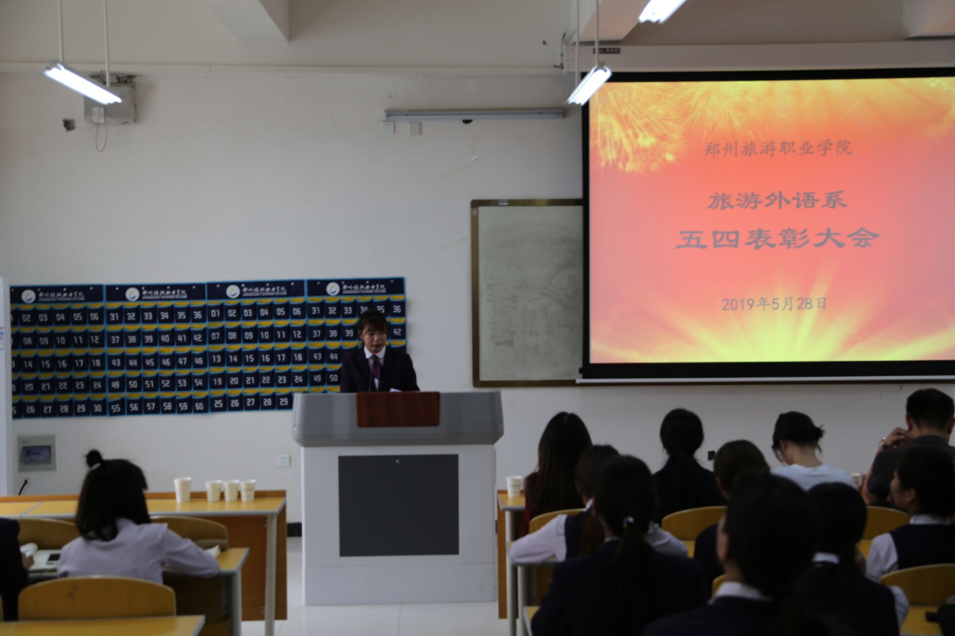 为纪念进一步弘扬“五·四”爱国精神,表彰旅游外语系优秀的先进集体和先进个人,发挥先进典型的模范带头作用,引导我系同学积极进取,我系于2019年5月28日15.30在教学楼4B211教室隆重举行了表彰大会。