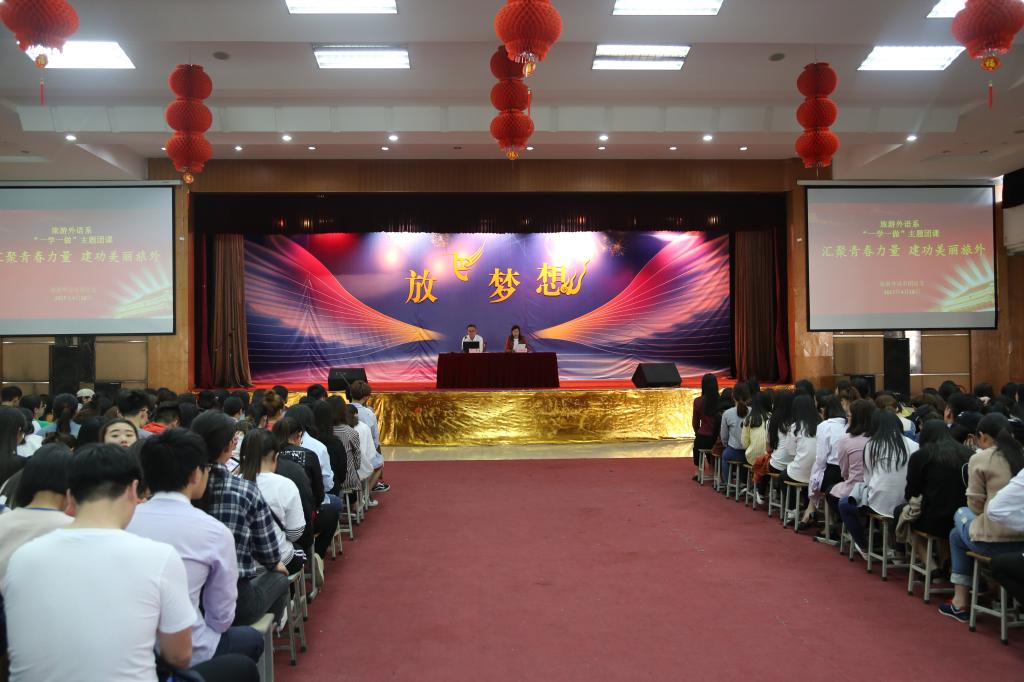 2017年4月18日下午四时我系在三楼大礼堂召开了“汇聚青春力量,建功美丽旅外”一学一做主题团课。本次团课由旅游外语系党总支副书记王磊担任主讲,我系团总支书记刘晓丹到场,我系所有团员参加本次团课。