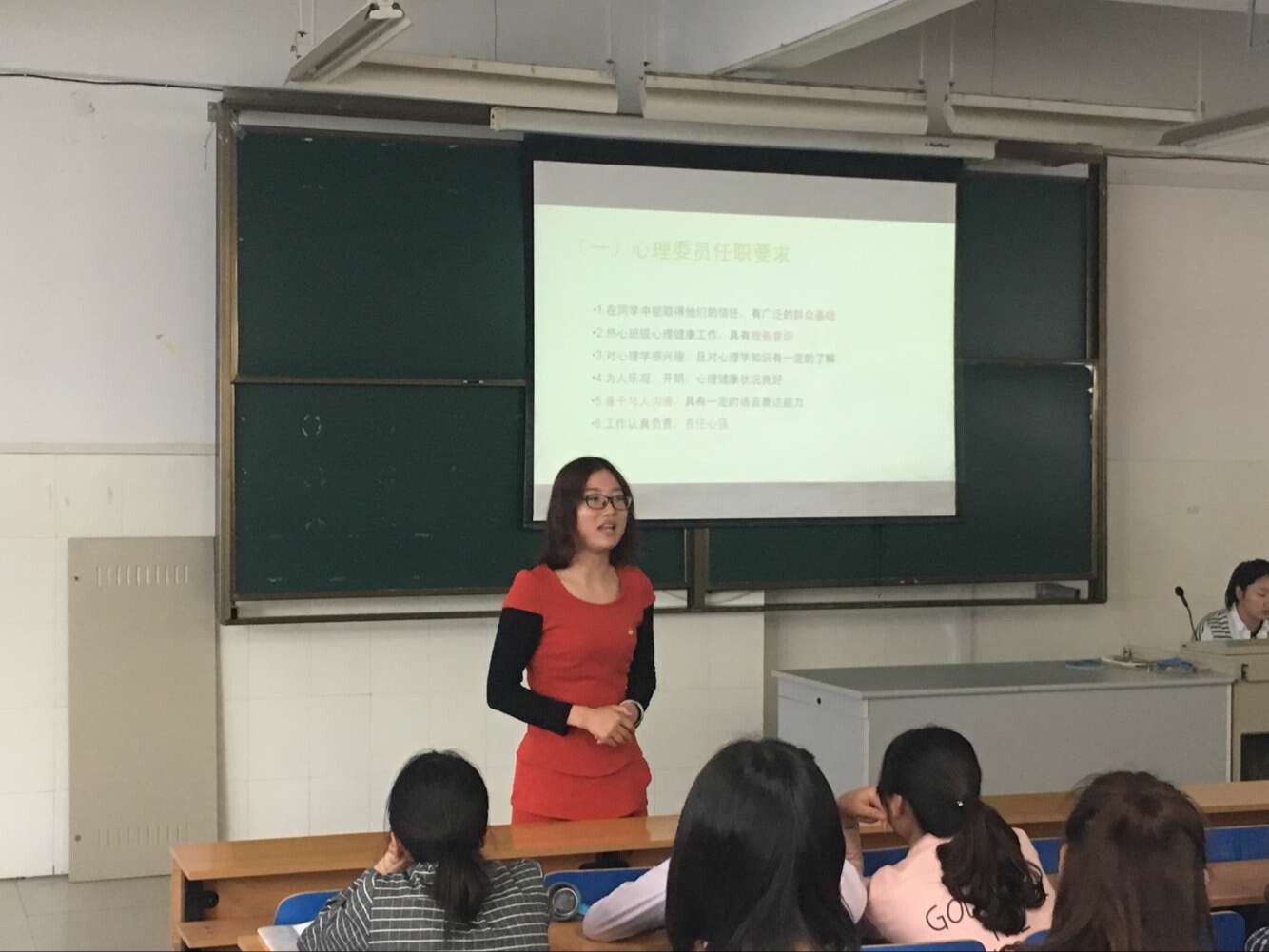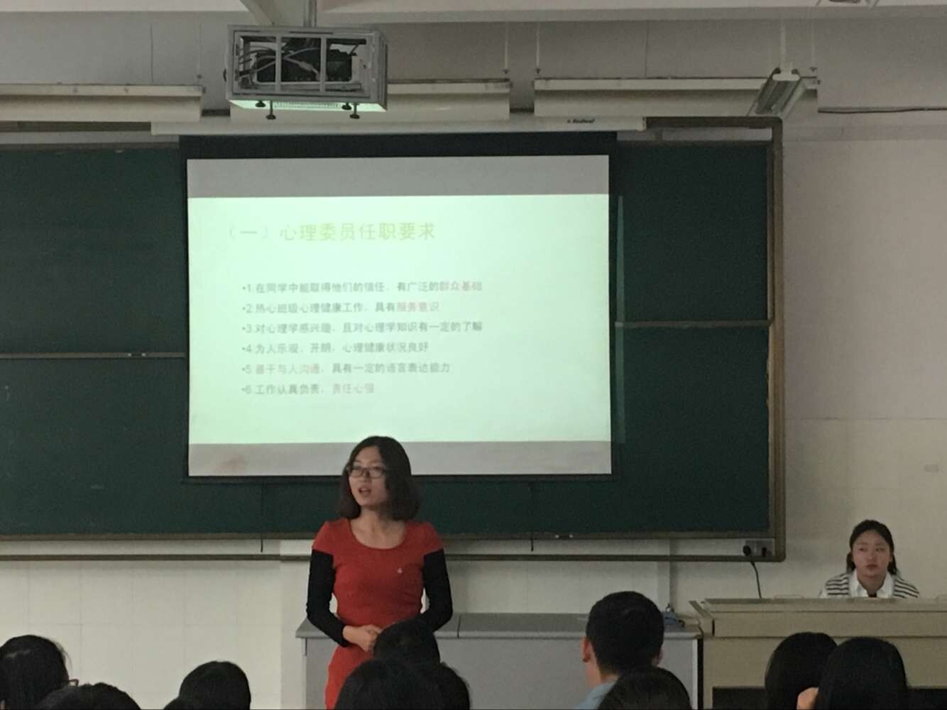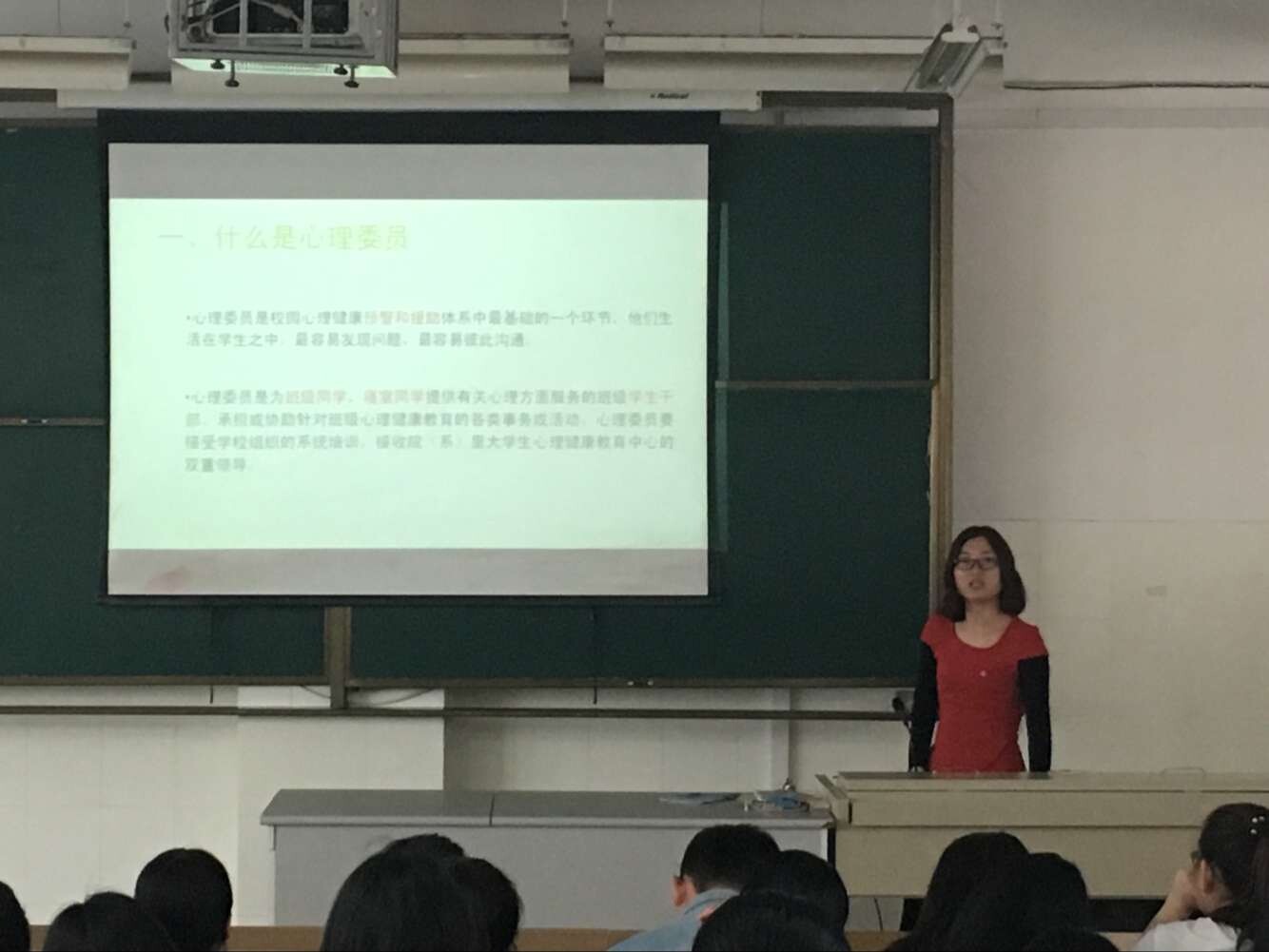 活动开始前王磊书记首先告诉了我们每个人都一定要重视正视心理问题,要正视自己的心理问题认真把每件事情做好。随后,又向我们举了患有心理疾病一些人的例子。接着务婧博老师告诉我们作为心理委员的任职要求:1、要有群众基础2、要有服务意识3、善于与他人沟通4、要有责任心理。并且作为一名合格的心理委员首先自己也要乐观开朗更要工作遵循保密原则。最后他又告诉我们了作为一名心理委员的重点关注的对象有1、遇突发事件的2、身体患病的3、感情受伤的4、人际关系失调的5、家庭特困的。
