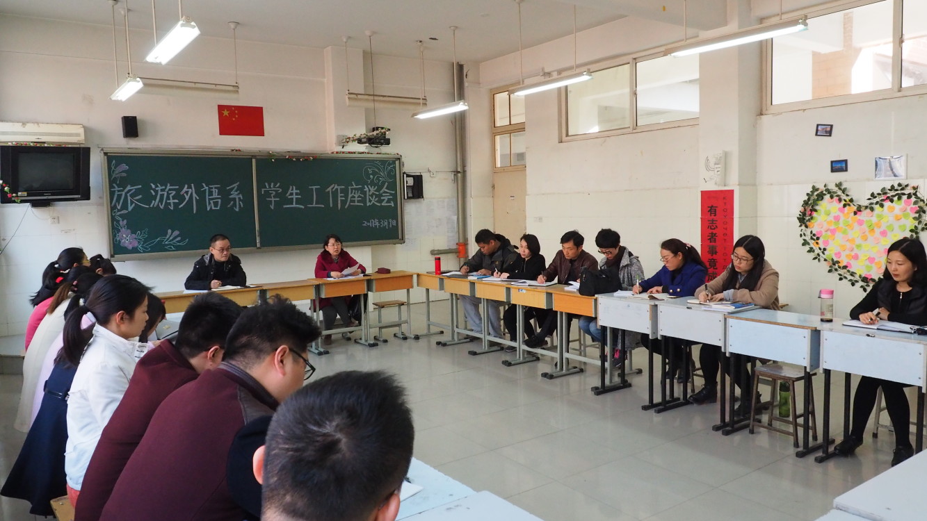 2017年3月9日下午16时,旅游外语系召开了全体班主任会议,外语系主任张贺玲、副主任赵艳丽,党总支副书记王磊,团总支书记刘晓丹以及外语系全体班主任、辅导员出席了此次会议,会议由王磊副书记主持,会议围绕学生工作这一主题展开讨论。