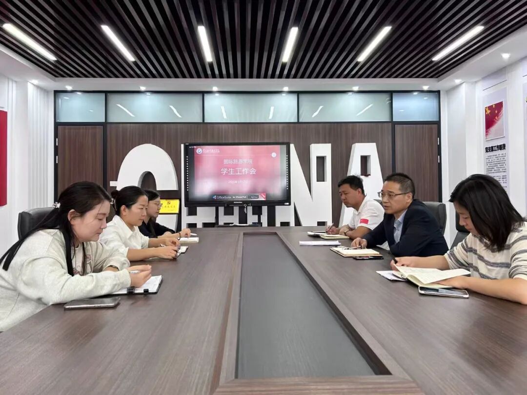 为统筹推进新学期学生管理、思想引领及校园活动开展,明确工作重点与方向,国际旅游学院于9月17日在清源楼党员活动室召开专题学生工作会。学院党总支书记肖磊、团总支书记刘晓丹、学工办代主任沈晋旭及全体辅导员老师参加会议。