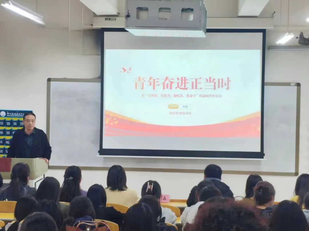 为引导新生树立正确价值观,明确新时代青年使命,10月13日,国际旅游学院党总支书记肖磊在清源楼211教室,以《青年奋进正当时:做“有理想、敢担当、能吃苦、肯奋斗”的新时代好青年》为题,为2025级新生讲授专题思政课。
