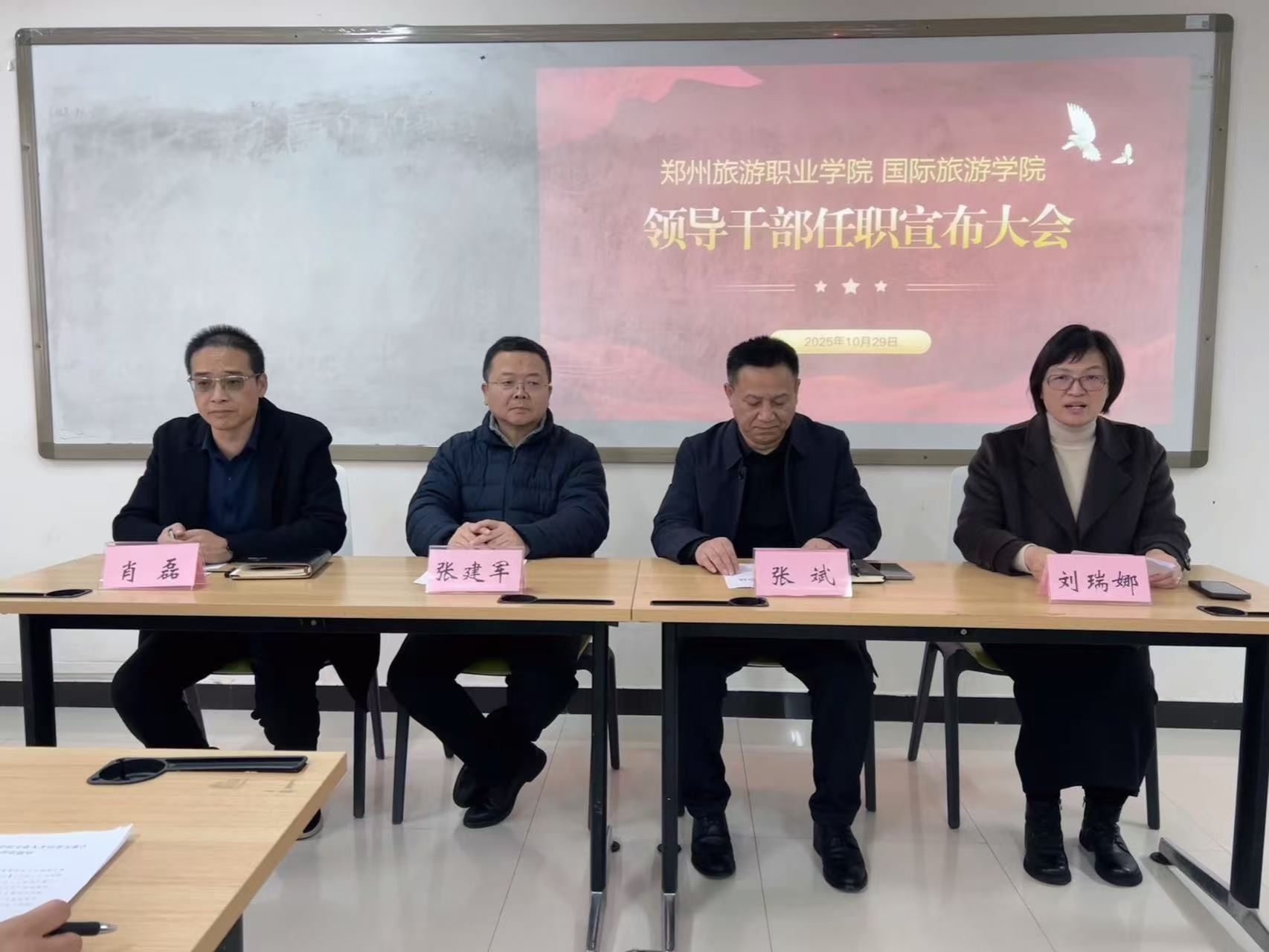 10月29日,郑州旅游职业学院国际旅游学院院长任职会议在清源楼4B207教室举行。校党委委员、副校长张建军,机关党总支书记兼组织部副部长张斌,学院领导班子全体成员及全院教职工参会,会议由学院党总支书记肖磊主持。