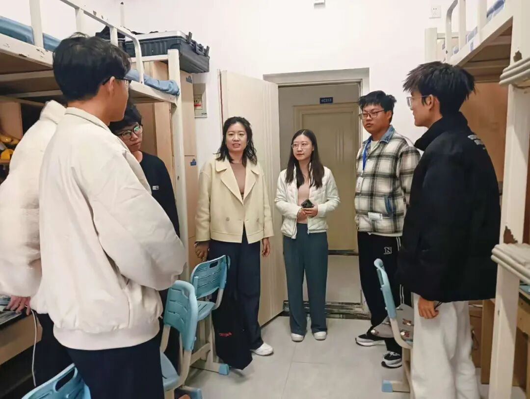 11月9日,国际旅游学院院长刘瑞娜、团总支书记刘晓丹、学工办代主任沈晋旭及全体辅导员走进“一站式”学生社区,开展走访慰问活动,为同学们送去学院的关怀与温暖。