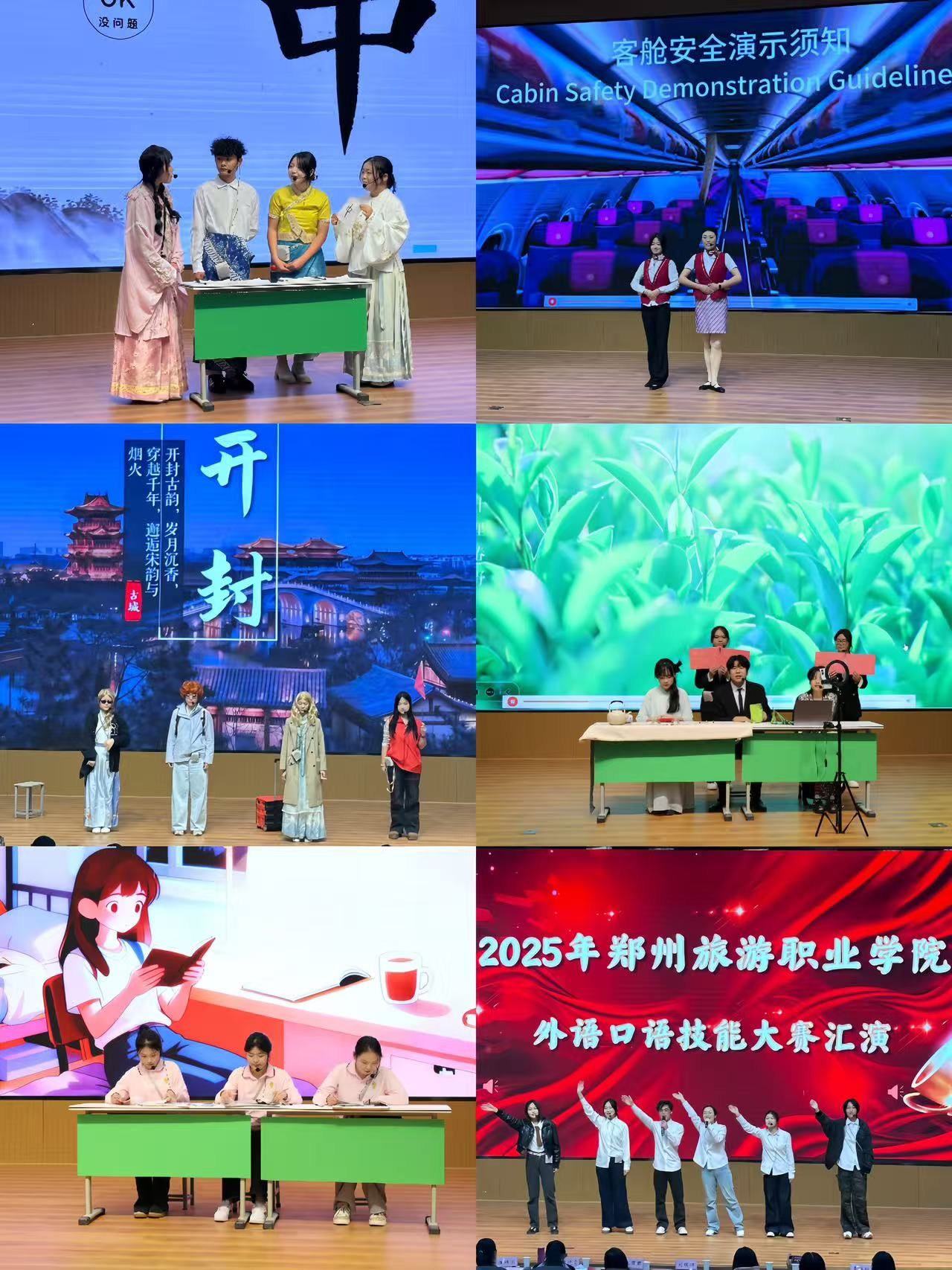 11月26日,郑州旅游职业学院“语言为桥,职通未来”外语口语技能大赛汇报演出在2号楼演播中心成功举行。郑州旅游职业学院副校长张建军、国际旅游学院副院长张丽君、各教研室主任及指导教师代表出席活动。来自国际旅游学院、智慧服务学院、旅游管理学院等多个学院的学生同台展示,呈现了一场融合语言技能、专业特色与文化体验的精彩演出。