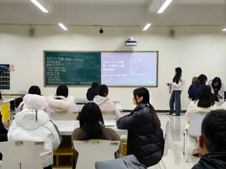 在文明离校与假期安全教育环节,班会内容系统覆盖期末宿舍安全、离校路途安全与假期期间安全三大方面。班主任详细讲解了离校前宿舍清洁、断水电等具体要求,强调了选择正规交通工具、保持通讯畅通等路途注意事项,并重点提醒学生警惕电信诈骗、远离危险活动、合理安排假期生活,引导学生牢固树立“安全第一”的意识,确保文明离校、平安返家。