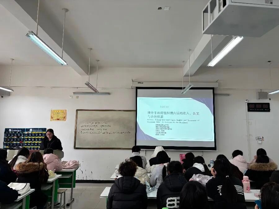 在《中华人民共和国境外非政府组织境内活动管理法》正式实施九周年之际,1月5日,国际旅游学院在清源楼组织各班级召开学习《中华人民共和国境外非政府组织境内活动管理法》主题班会,全面解读法律的内容,增强师生法治意识,为规范参与国际交流合作筑牢法律基础。