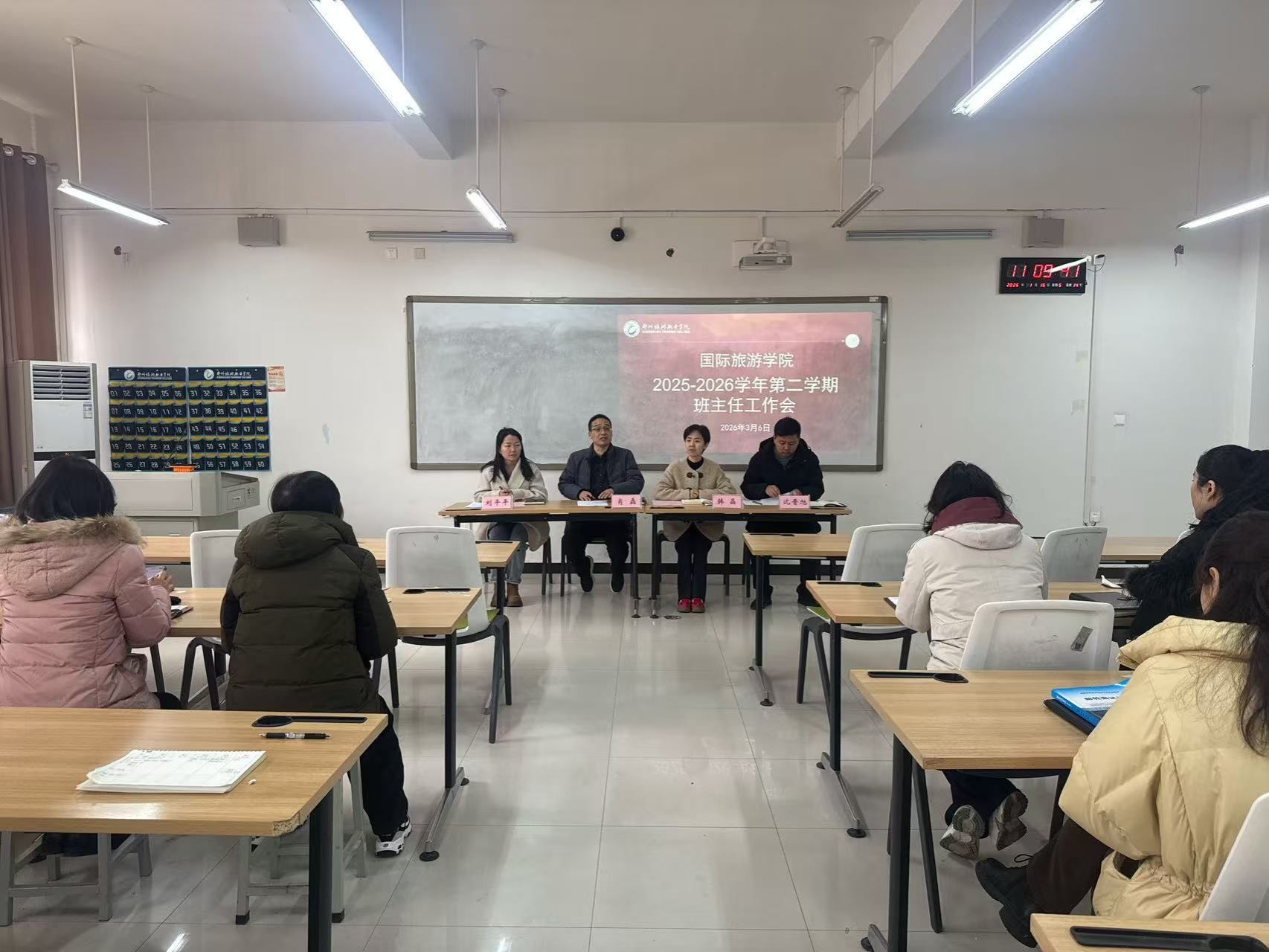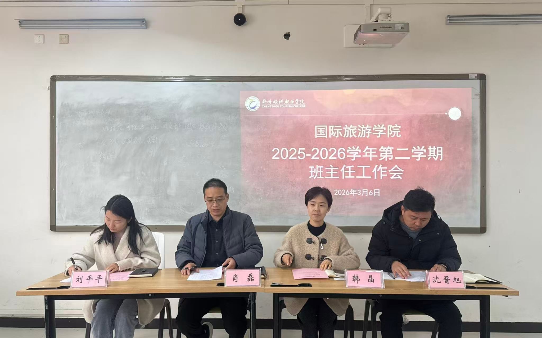 3月6日,国际旅游学院在清源楼207教室召开2025-2026学年第二学期期初班主任工作会,部署新学期班级管理与育人工作。学院党总支书记肖磊、党总支副书记韩晶、团总支书记刘平平、学工办主任沈晋旭及全体班主任参加会议。