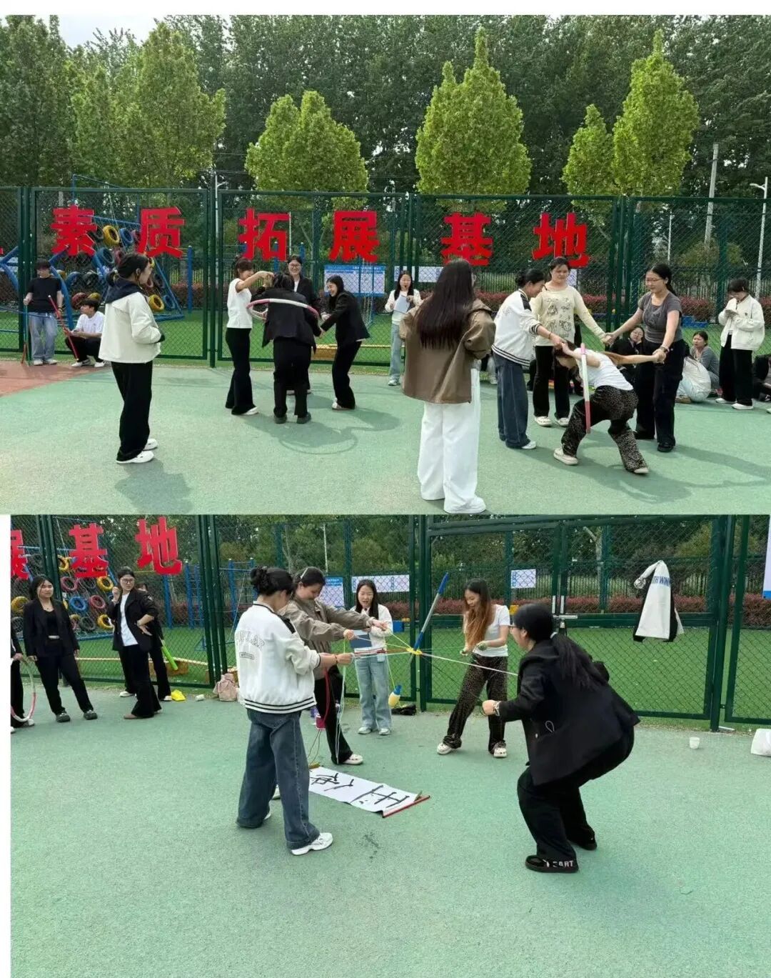 随后,同学们分组开展趣味竞技比拼。“珠行万里”中,队员们手持U型槽紧密衔接、默契配合,全神贯注传递小球,每一个衔接动作都彰显着团队协同的力量;“一圈到底”环节,大家手拉手紧密相连,在欢声笑语中传递呼啦圈,在互助协作中拉近心理距离、增进彼此信任;“神笔马良”项目里,团队成员合力操控巨型毛笔完成书写,在反复沟通、不断调整中,深刻体会到分工协作的艺术;“不倒森林”挑战中,队员们反应迅速、精准换位,全力保持木棍挺立,在紧张有序的节奏中,有效锻炼了反应能力与团队协同意识。