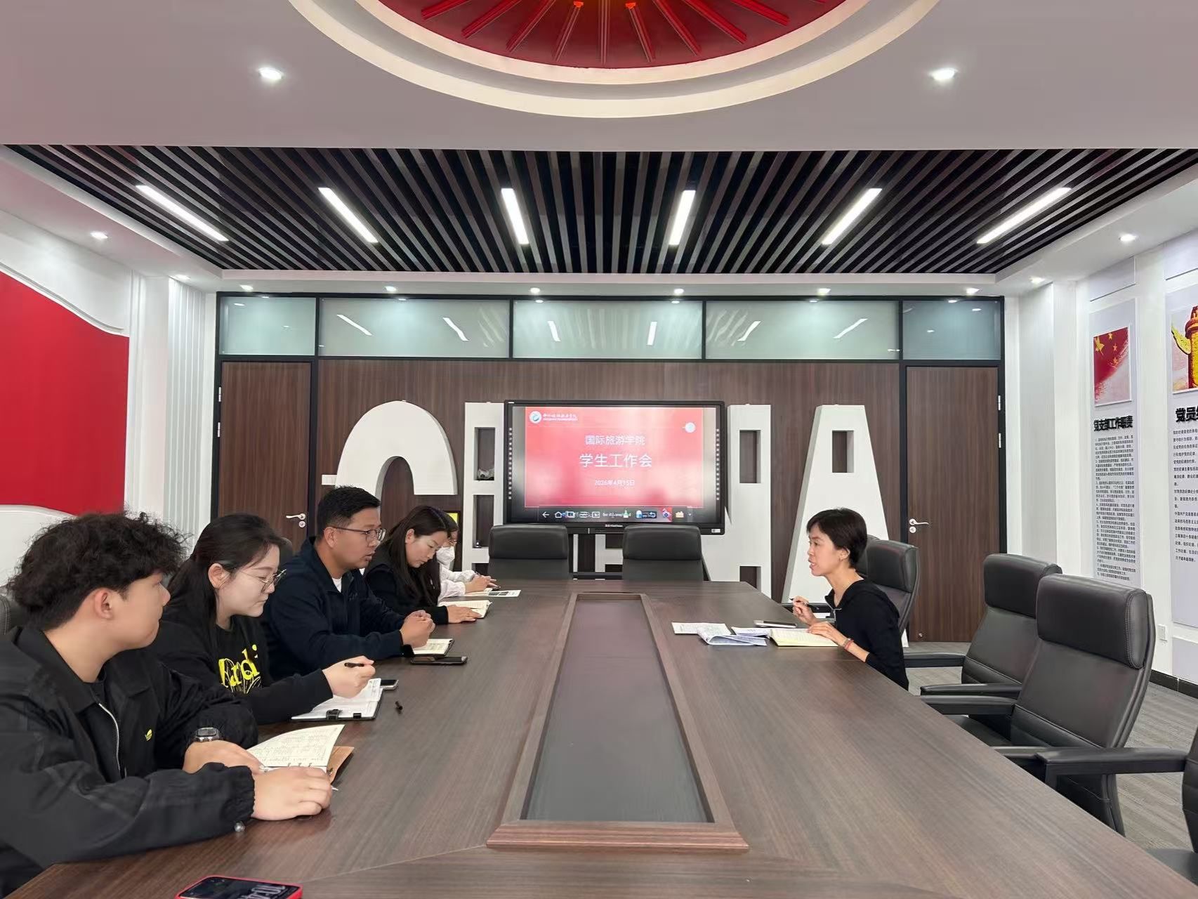 为进一步夯实学生工作基础,细化学生管理与校园活动各项举措,4月15日,国际旅游学院在清源楼党员活动室召开学生工作会。学院党总支副书记韩晶、团总支书记刘平平、学工办主任沈晋旭及全体辅导员、学生助理参加会议。