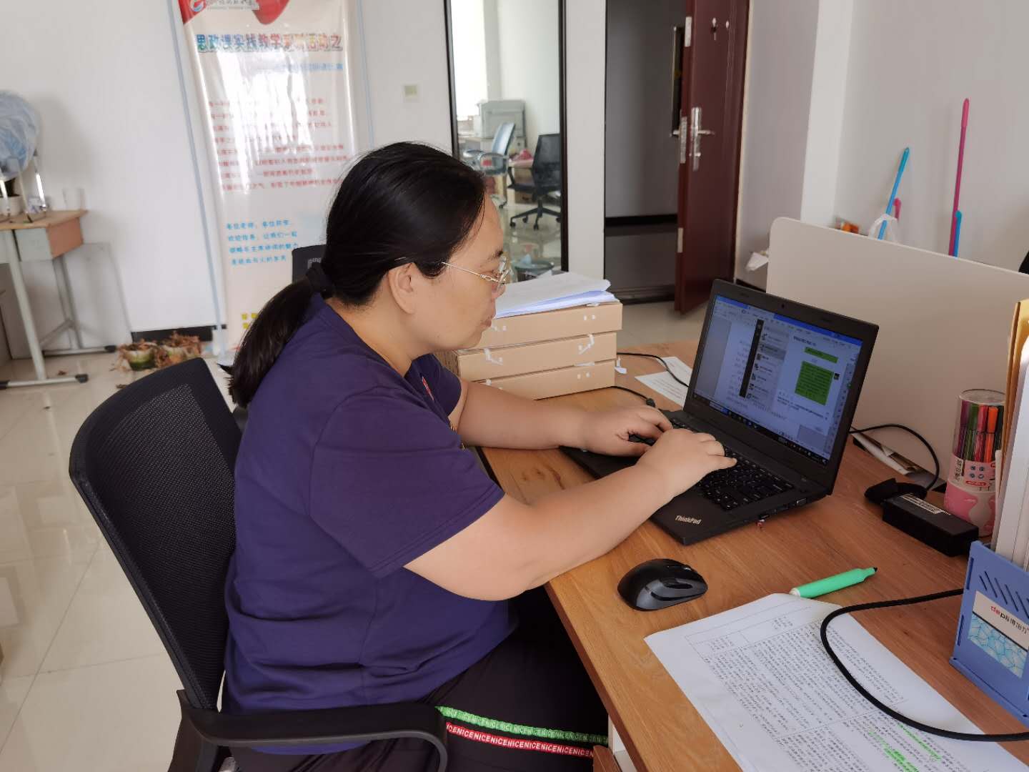 除本部门的创建工作之外,石老师还服从学校安排,协助宣传部检查其他部门材料,在检查过程中积极与被检查部门沟通,尽其所能提供各种帮助,共同圆满完成了学校的文明创建工作。