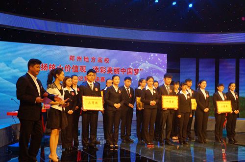 为深入贯彻落实党的十八大和习近平总书记系列重要讲话精神,促使青年师生深刻认识大力弘扬社会主义核心价值观、努力实现中华民族伟大复兴的中国梦的重大意义,郑州市教育局举办了郑州地方高校“弘扬核心价值观 添彩美丽中国梦”系列活动,其中一项就是知识竞赛。
