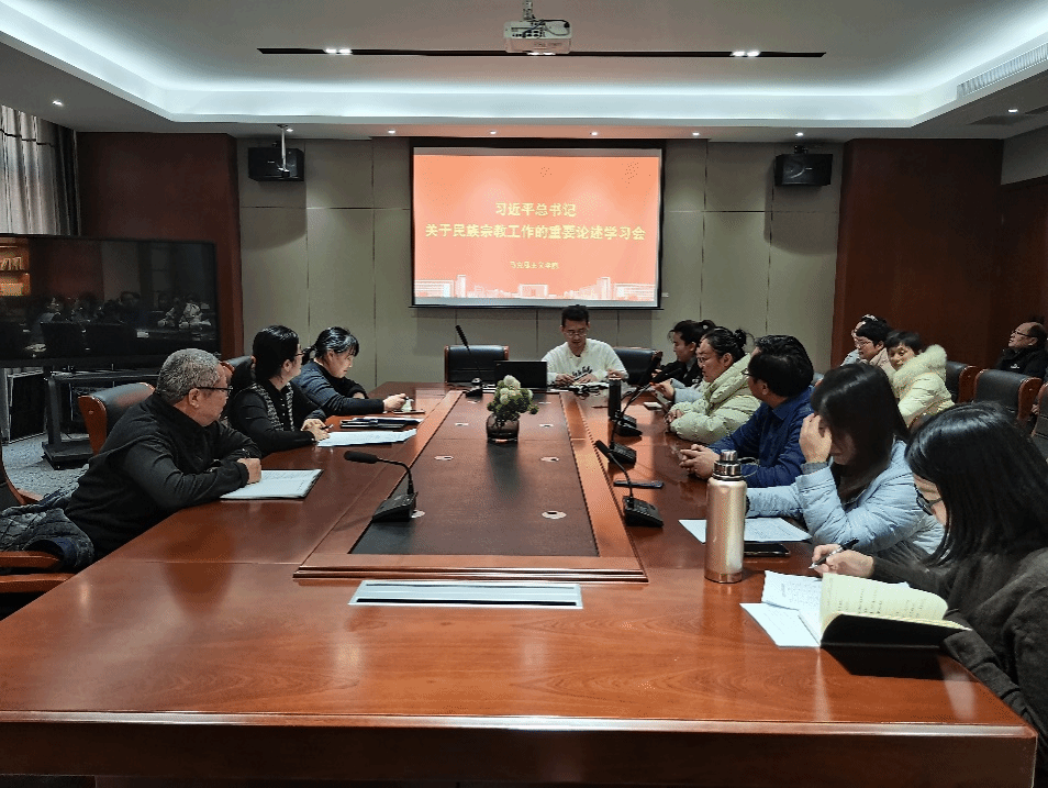 为深入学习贯彻习近平总书记关于民族工作的重要论述及新时代党的宗教工作理论和方针政策,增强全体教职工的民族团结意识,以铸牢中华民族共同体意识为主线,加强和改进党的民族工作,促进各民族像石榴籽一样紧紧抱在一起,共同团结奋斗、共同繁荣发展。11月27日,马克思主义学院组织开展习近平总书记关于民族宗教工作的重要论述专题培训。